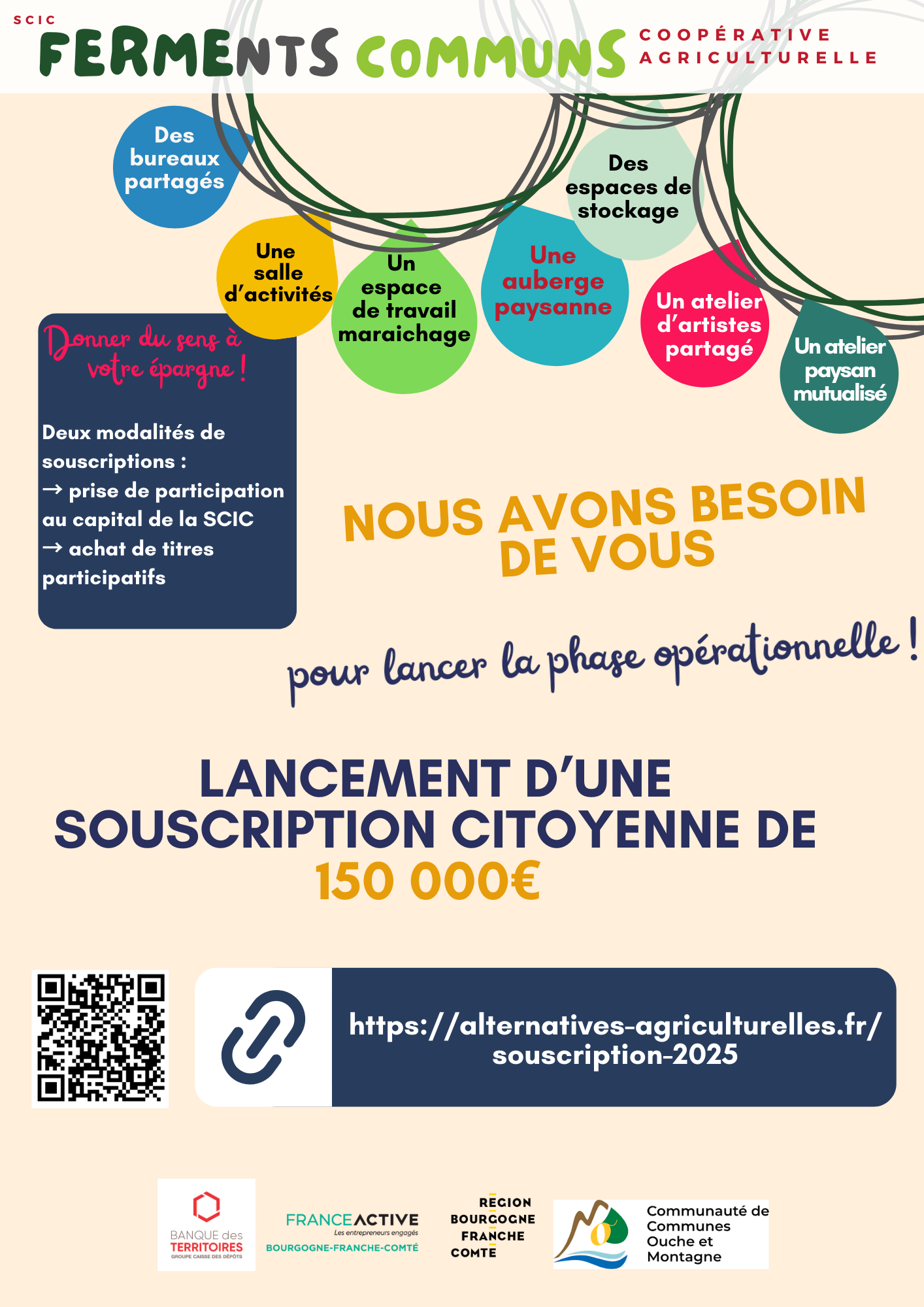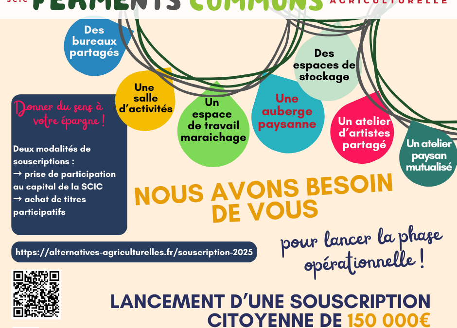 Mais pour finaliser ce montage économique, et se rendre le plus autonome possible des banques, nous avons besoin de vous ! Nous lançons une campagne de souscription citoyenne à hauteur de 150 000€. L’objectif est de venir compléter les autres financements de nos partenaires publics pour financer nos projets dont l’enveloppe global a été évalué à 750 000€.