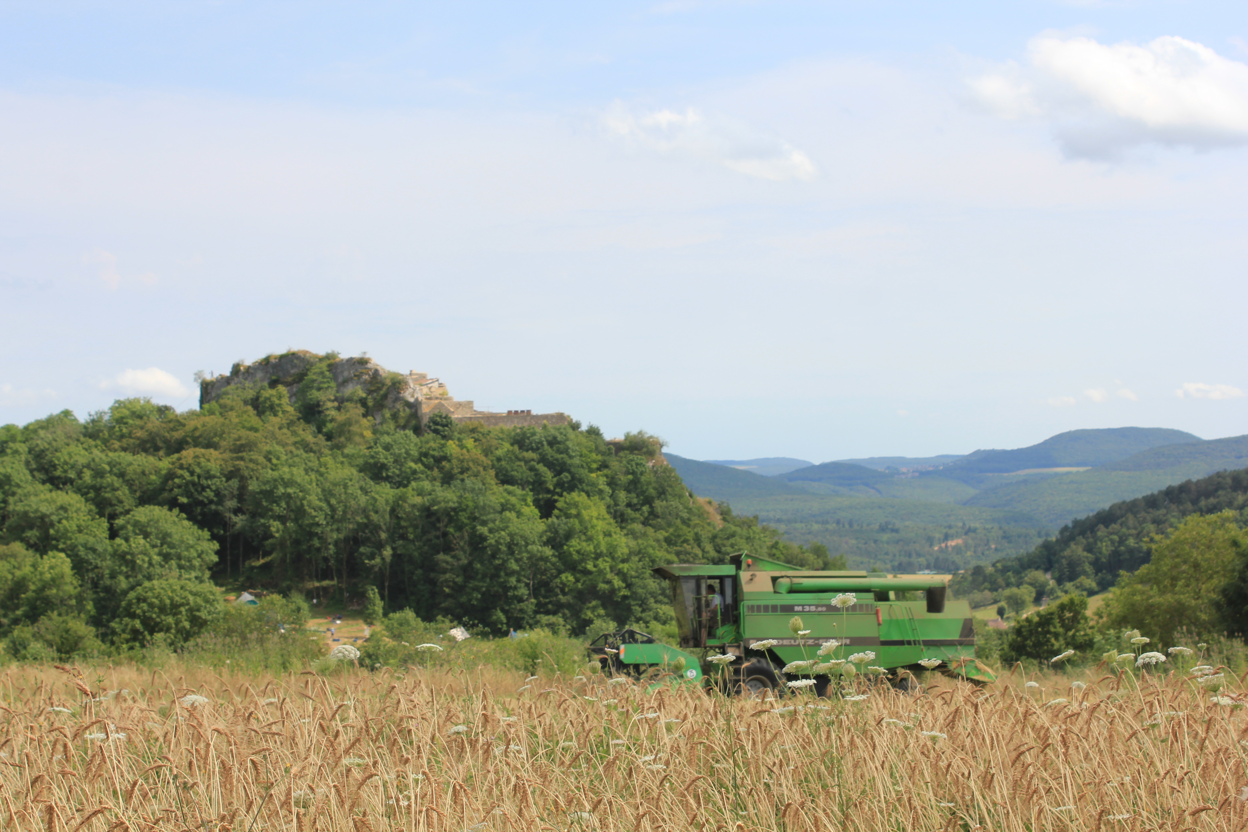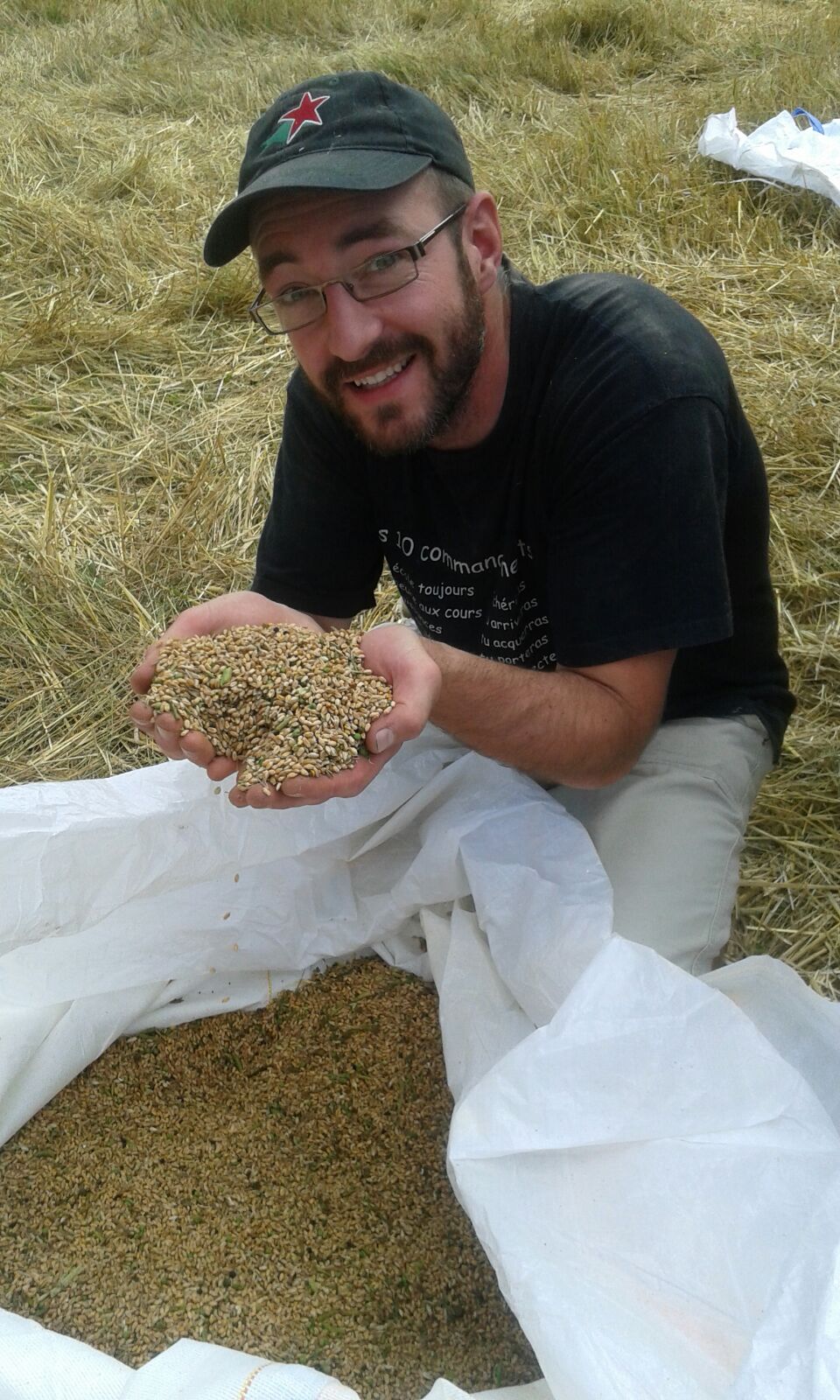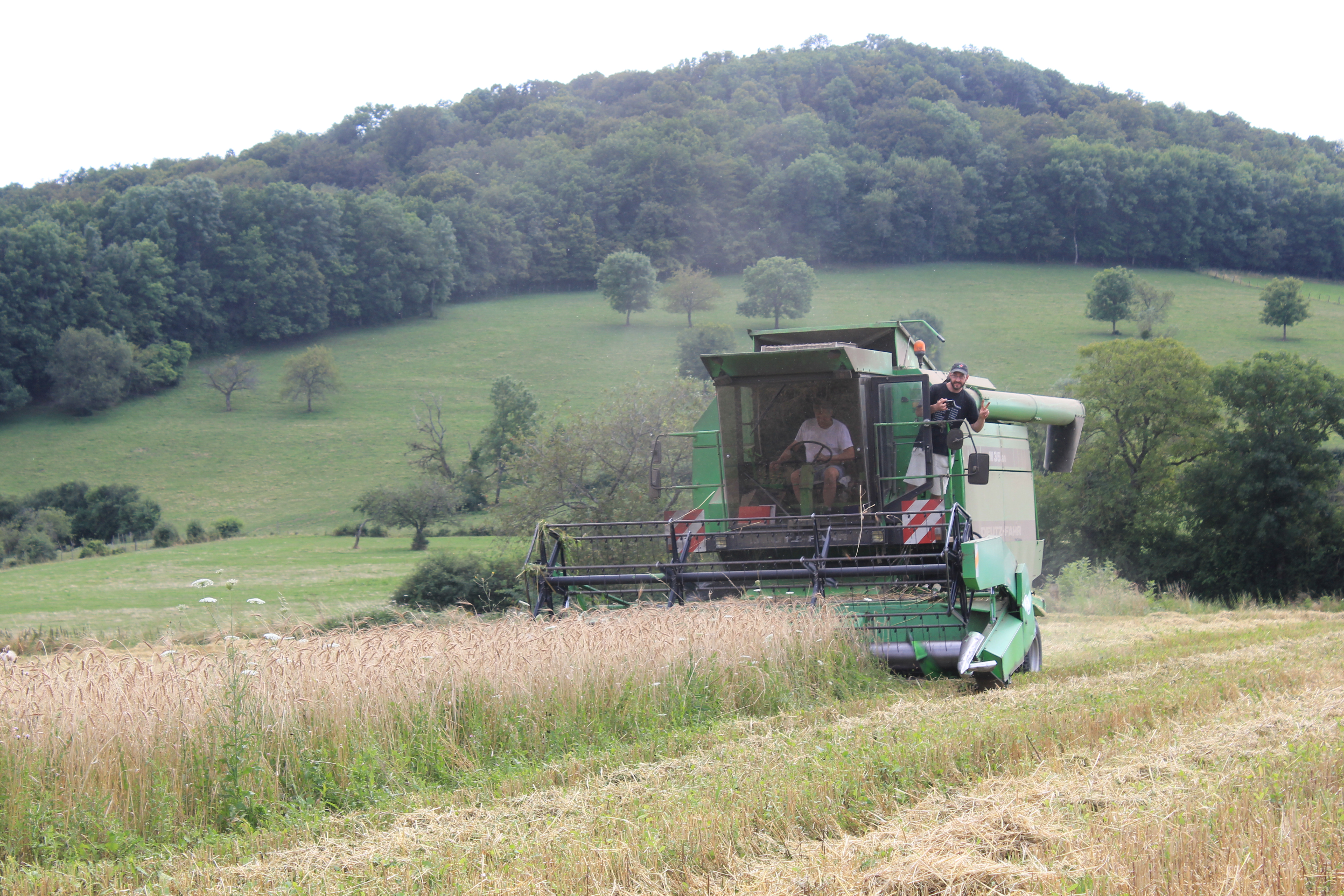 Déjà la parcelle appartient à Yvon, initialement sur le parcellaire de Claire&François, je l’ai récupéré pour l’occasion, le père du Sam me l’a semé, Sam me l’a roulé (…la parcelle), moi j’ai prié 🙂 et Jean-Marc me l’a moissonné.