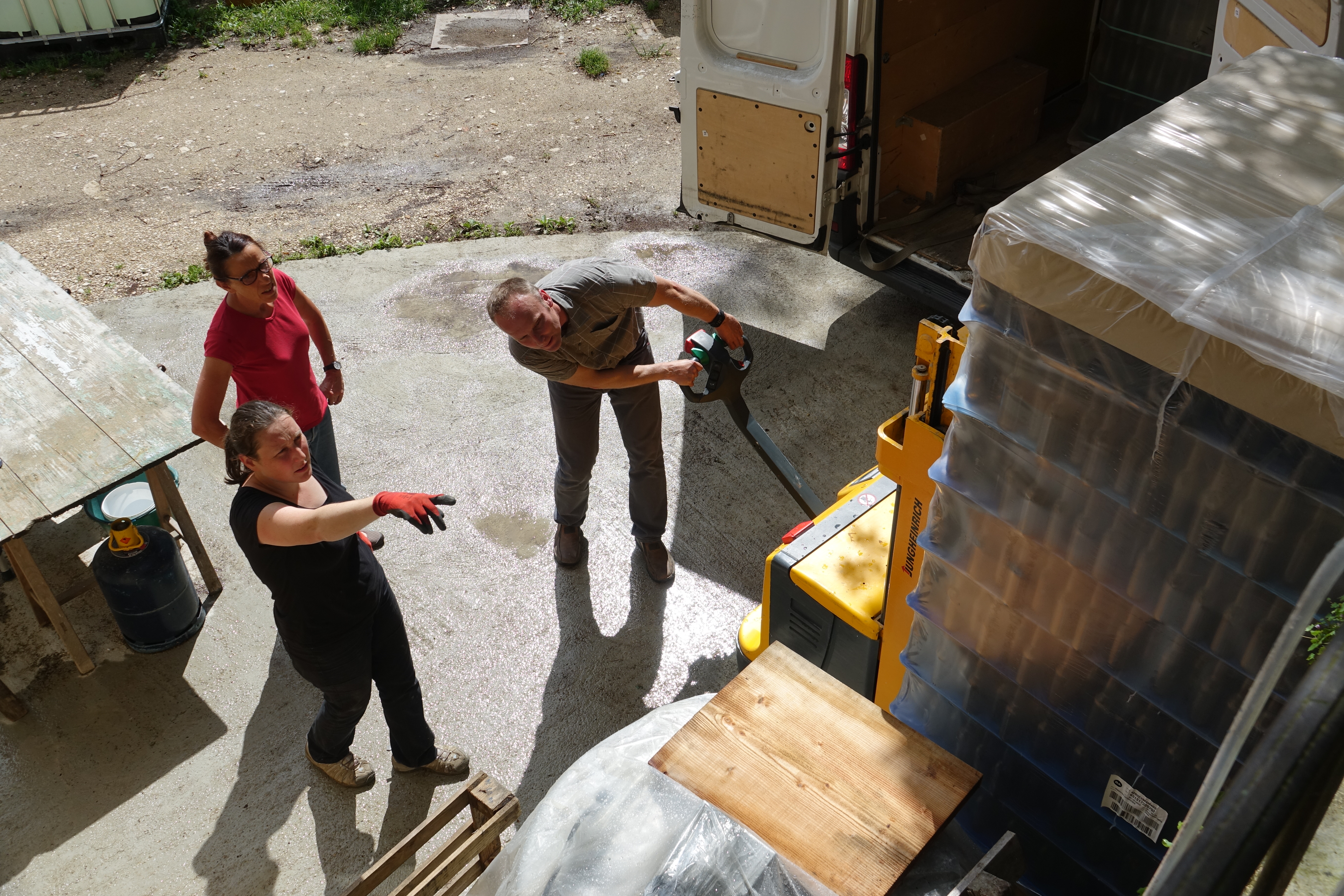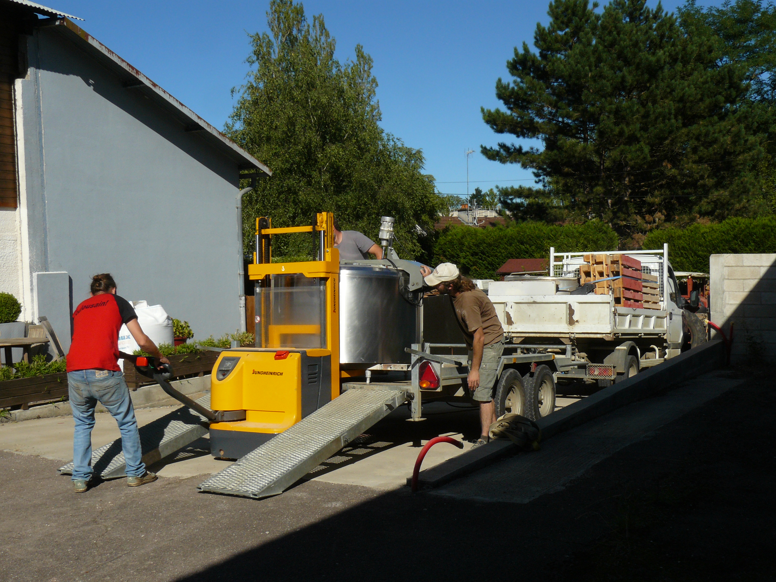 Août 2017 : Les travaux ne sont pas encore finis mais il faut que l’on aille récupérer le matériel à Longchamp !! On a tout pris !!!