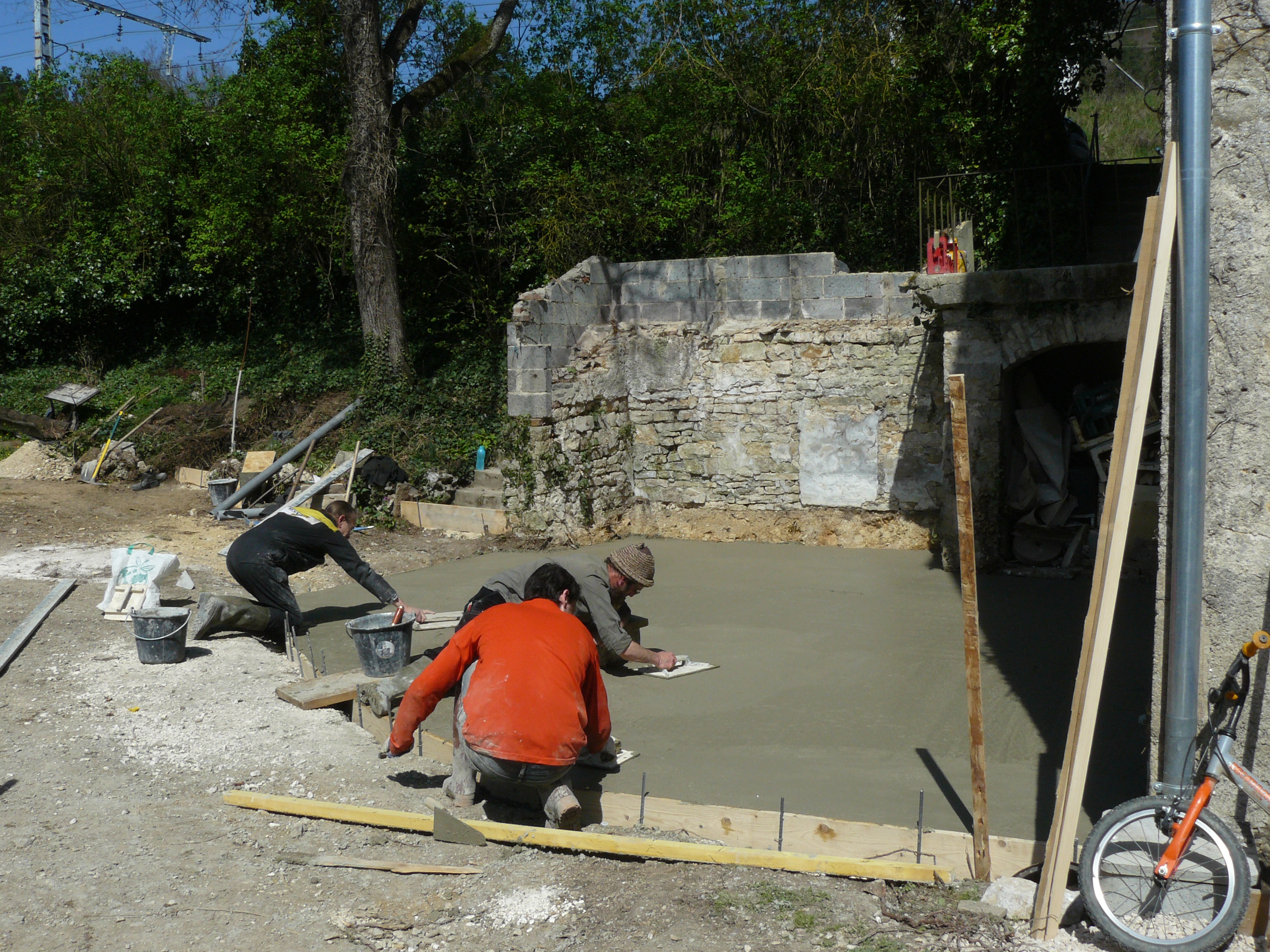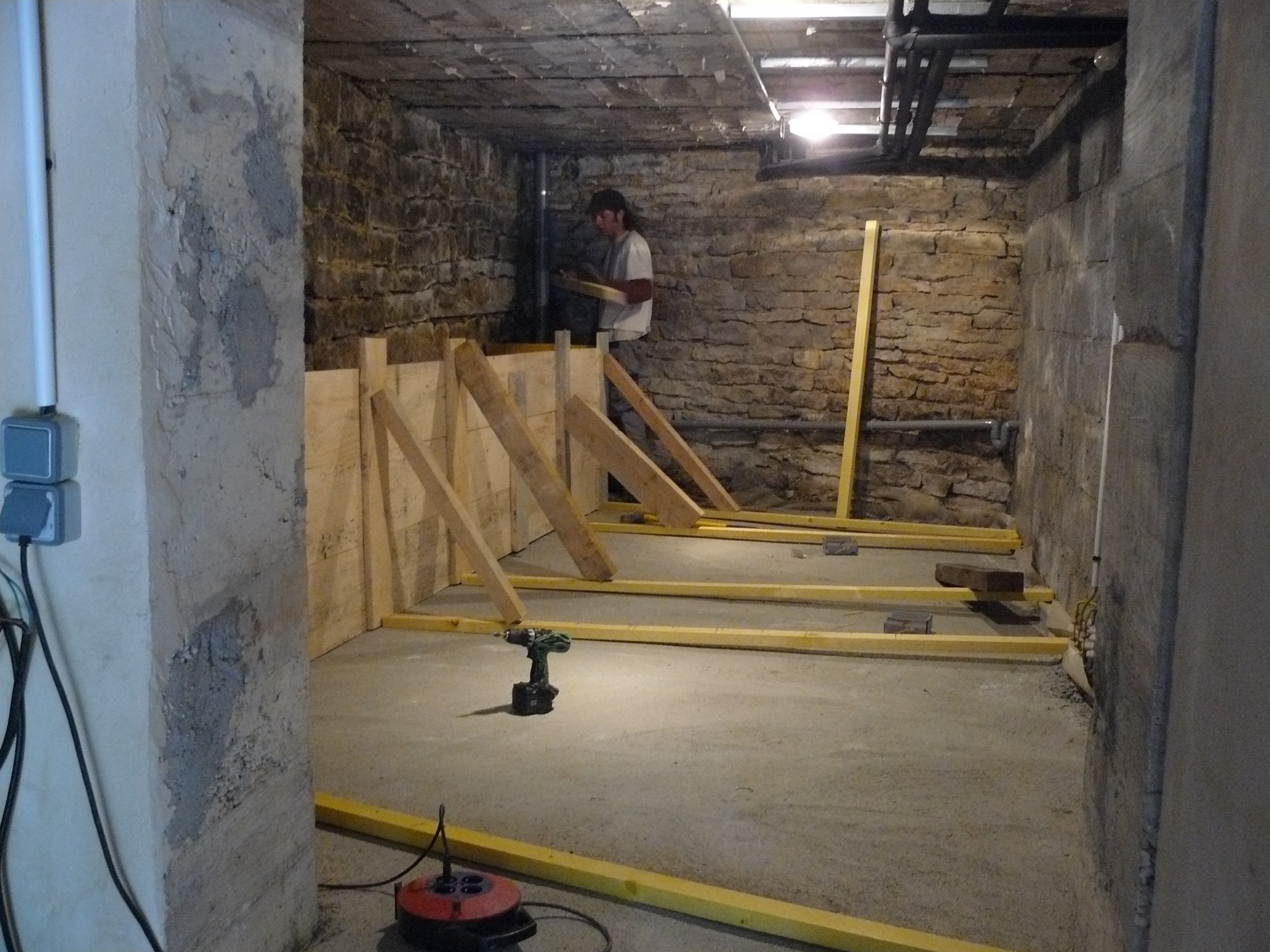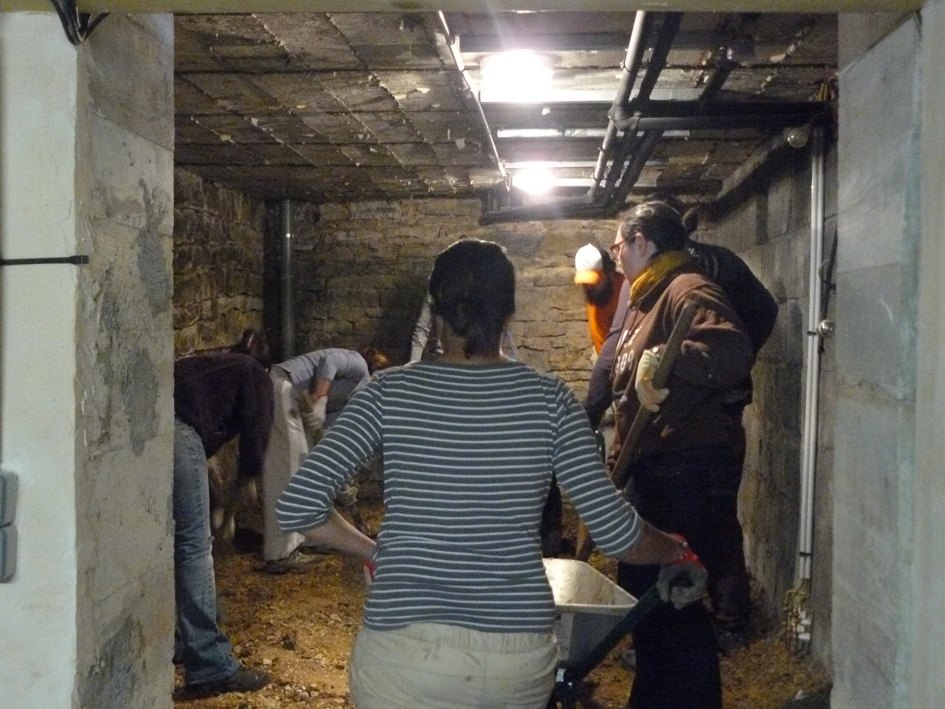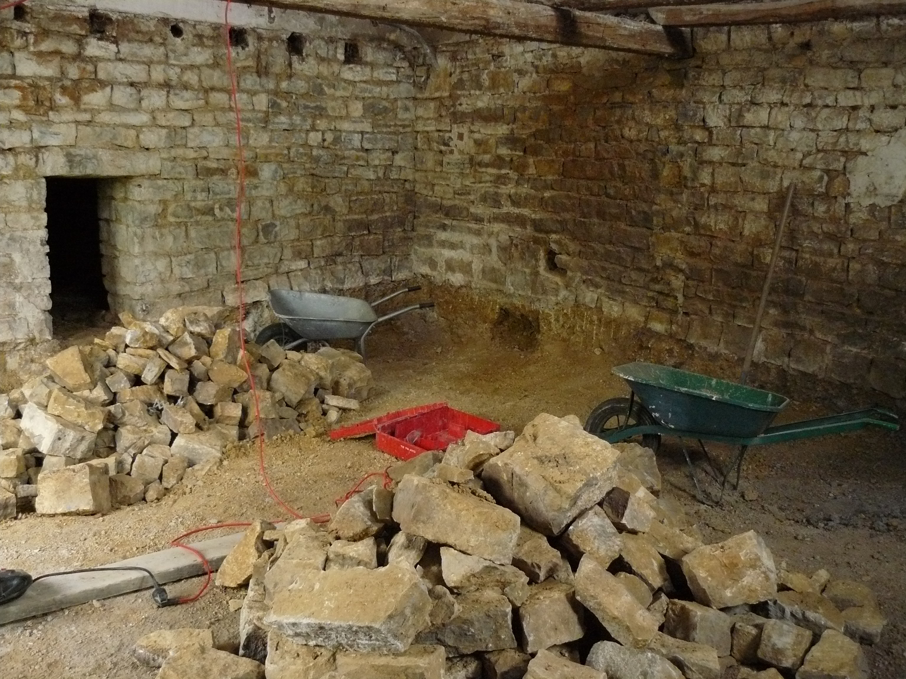 Avril 2017 : Allez encore un peu de courage ! Décaissage de l’espace de stockage et coulage des dalles.