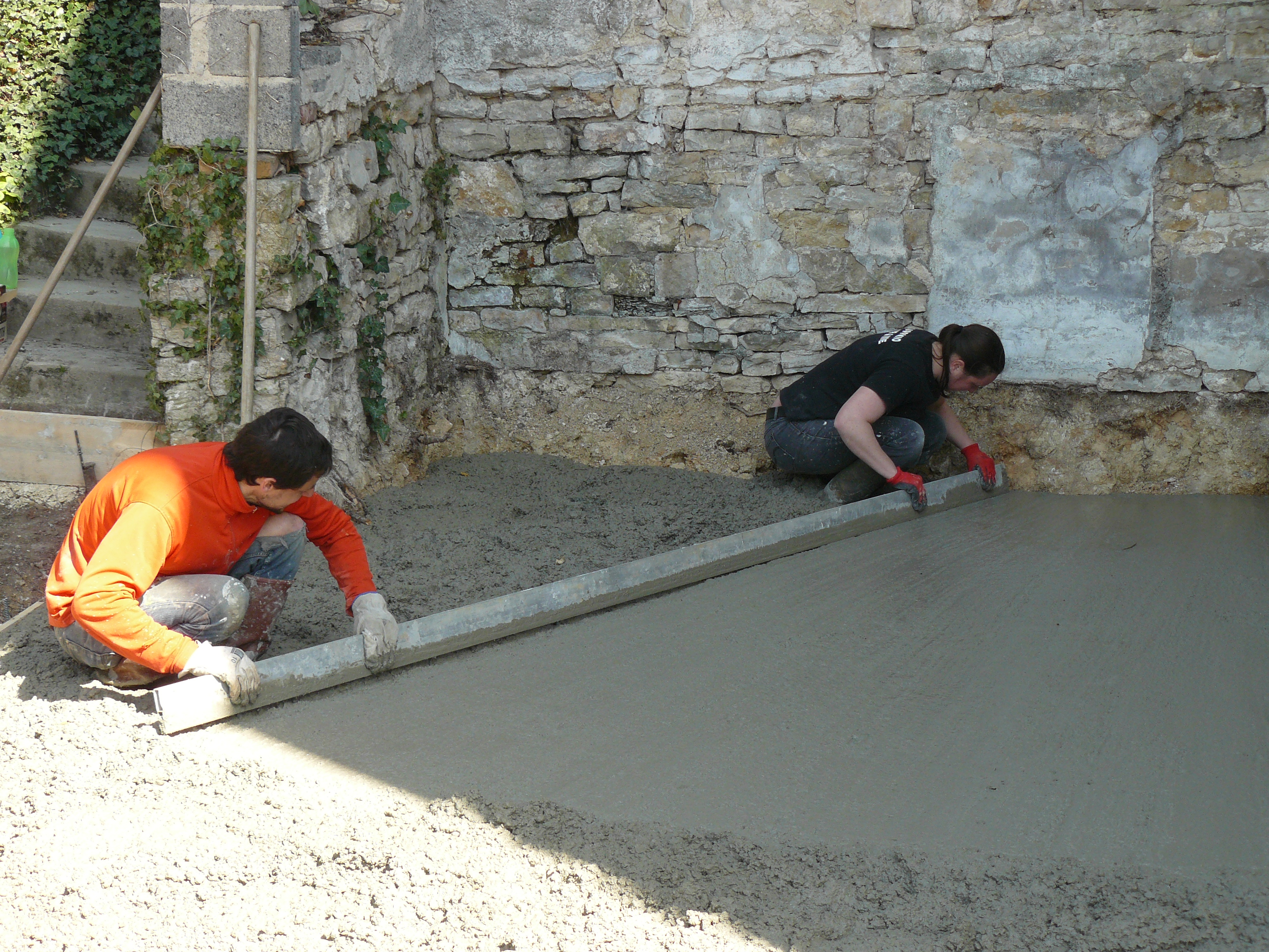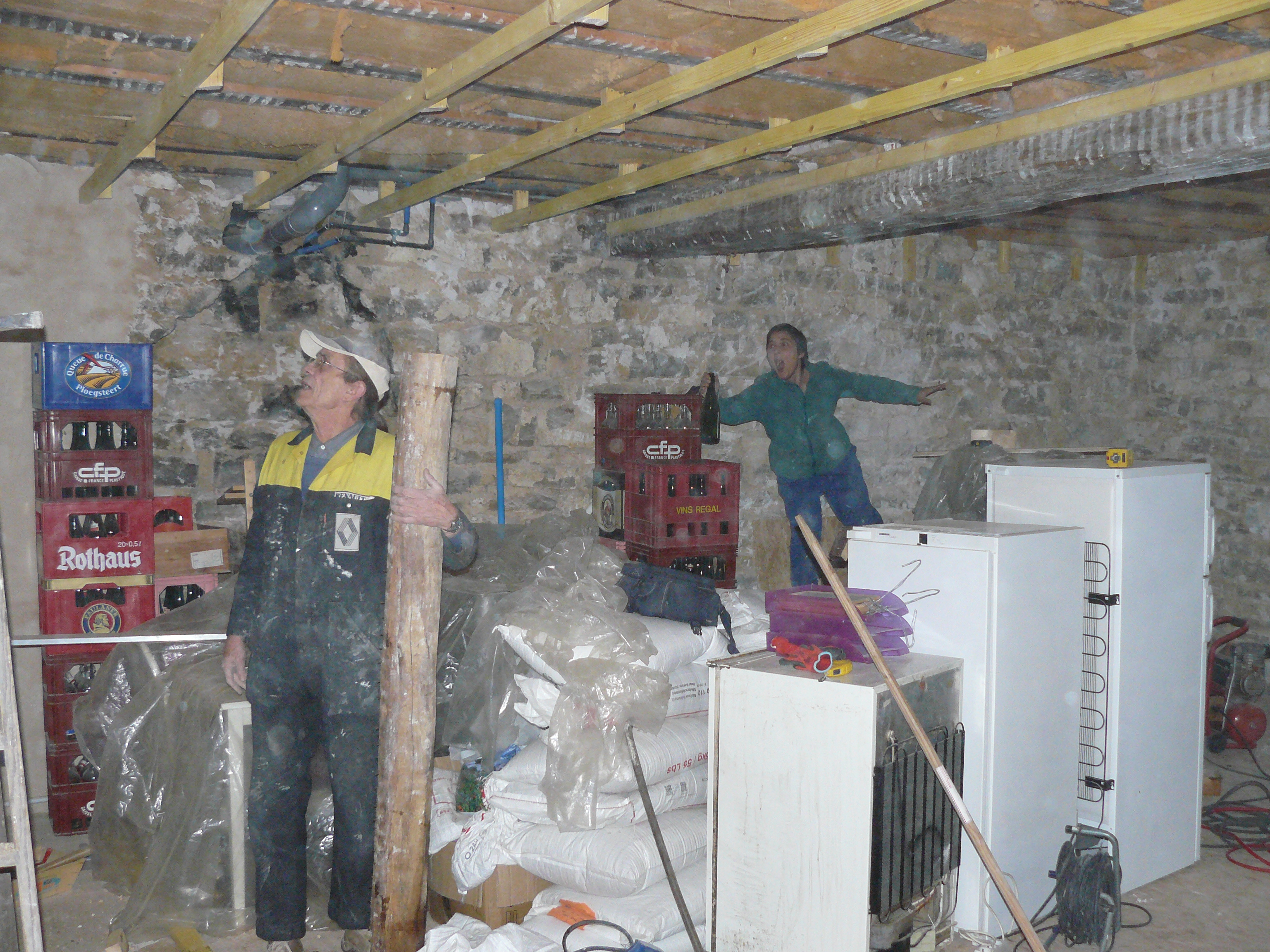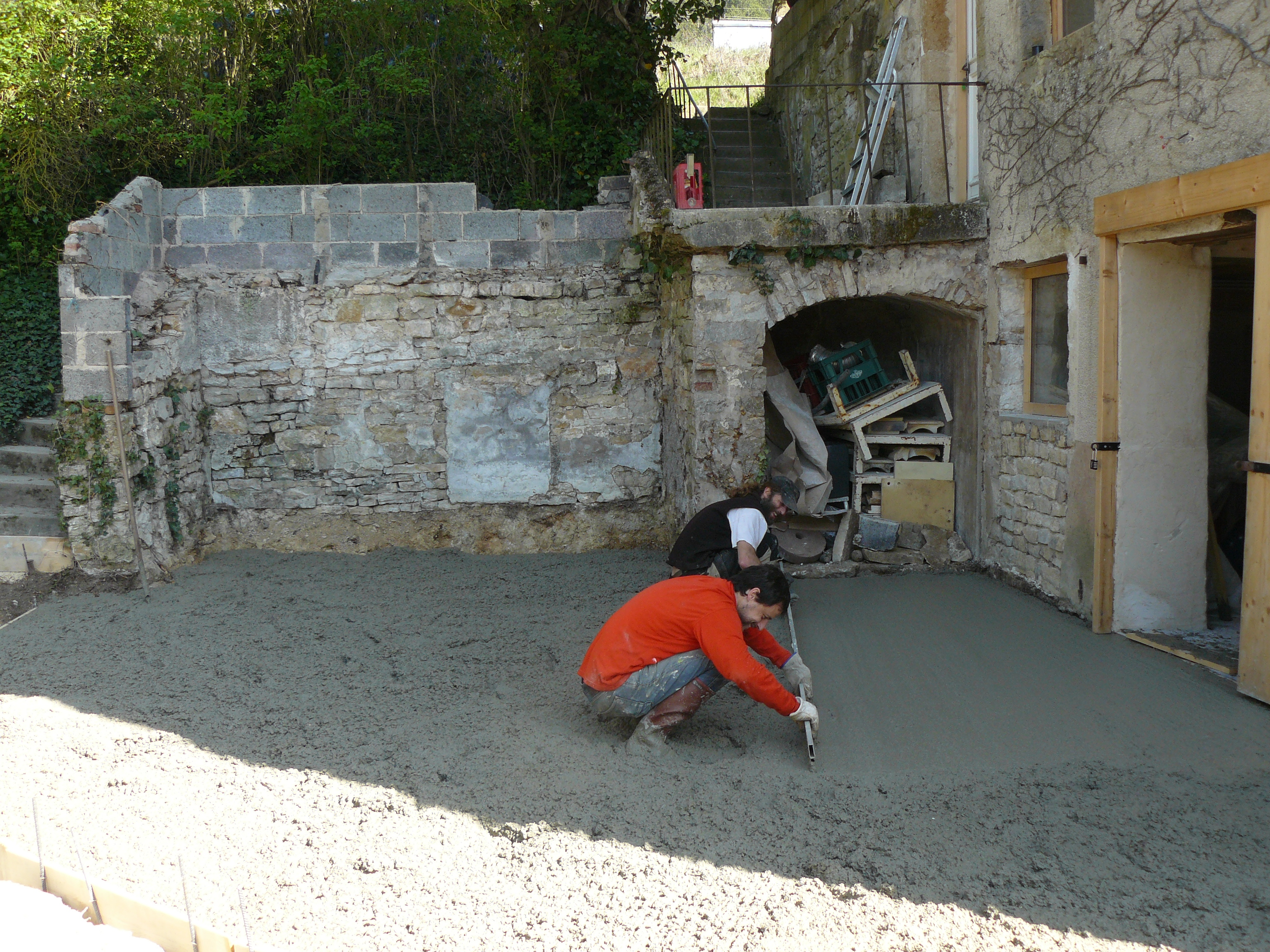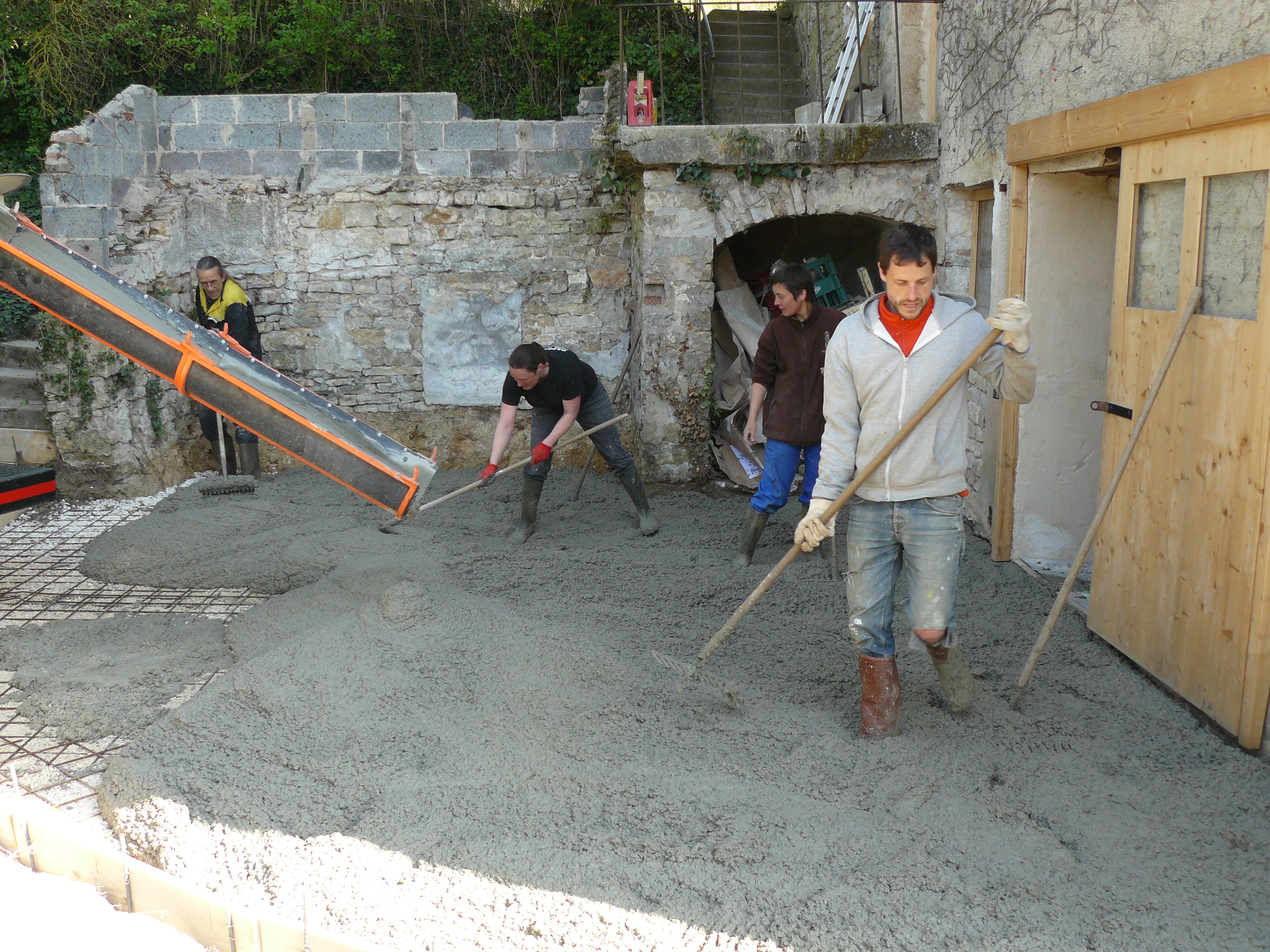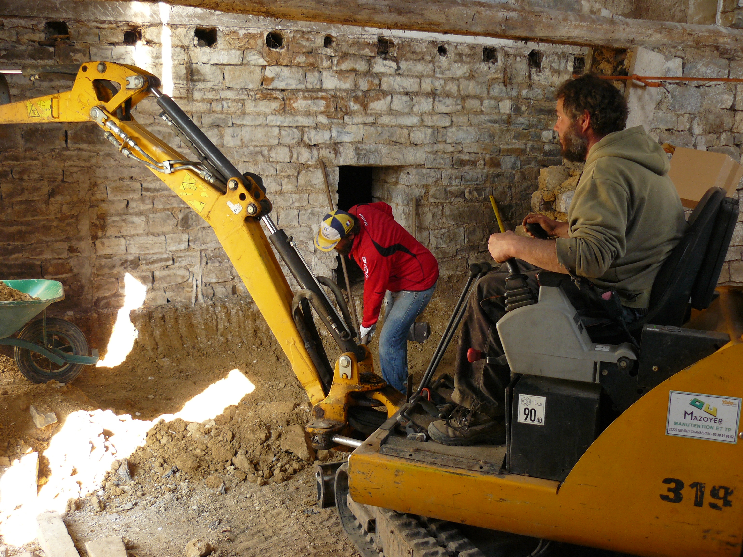 Avril 2017 : Allez encore un peu de courage ! Décaissage de l’espace de stockage et coulage des dalles.