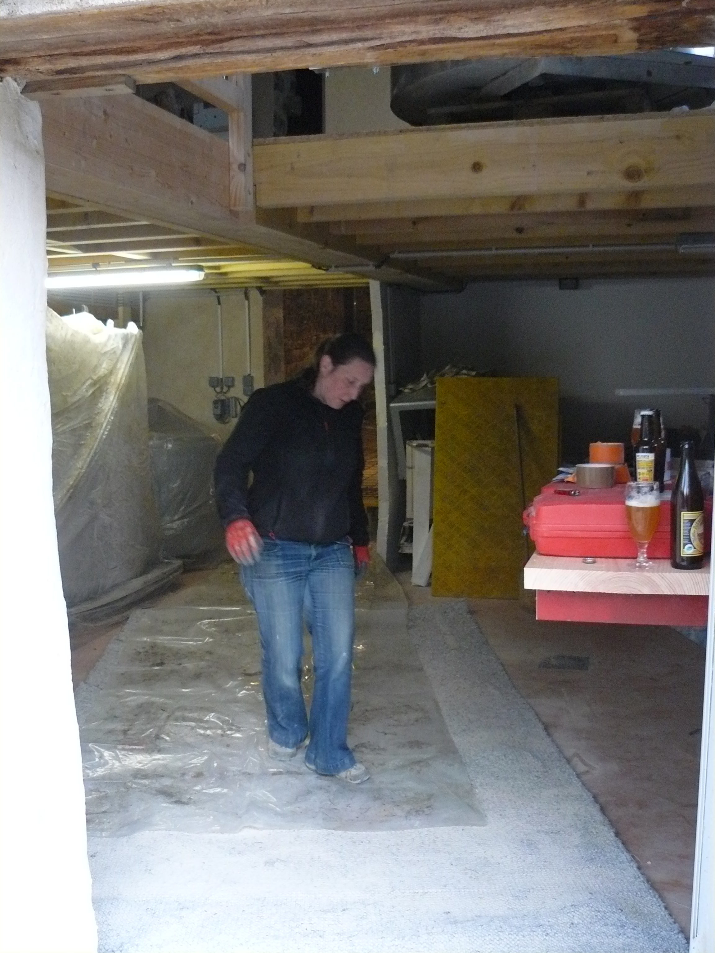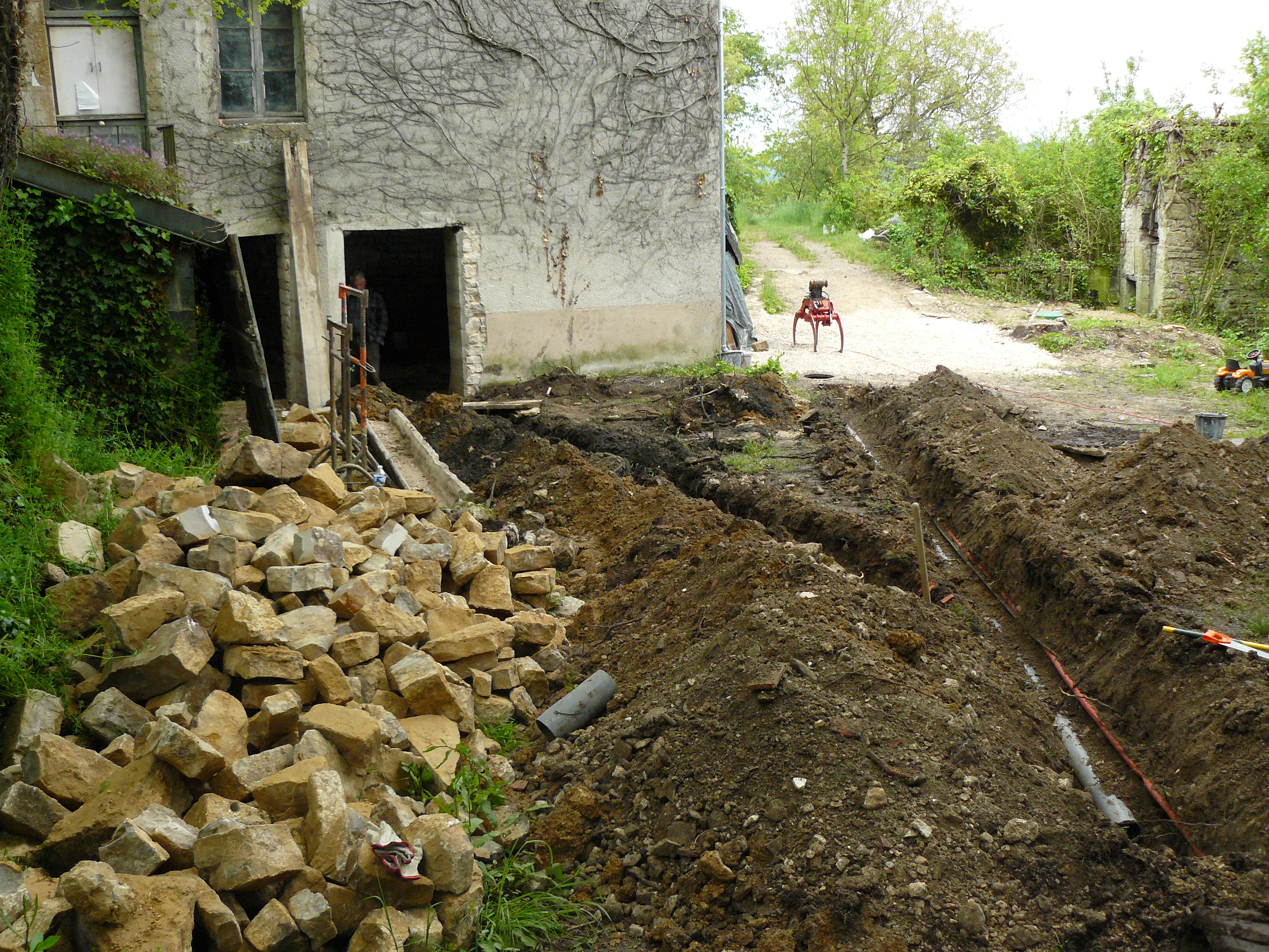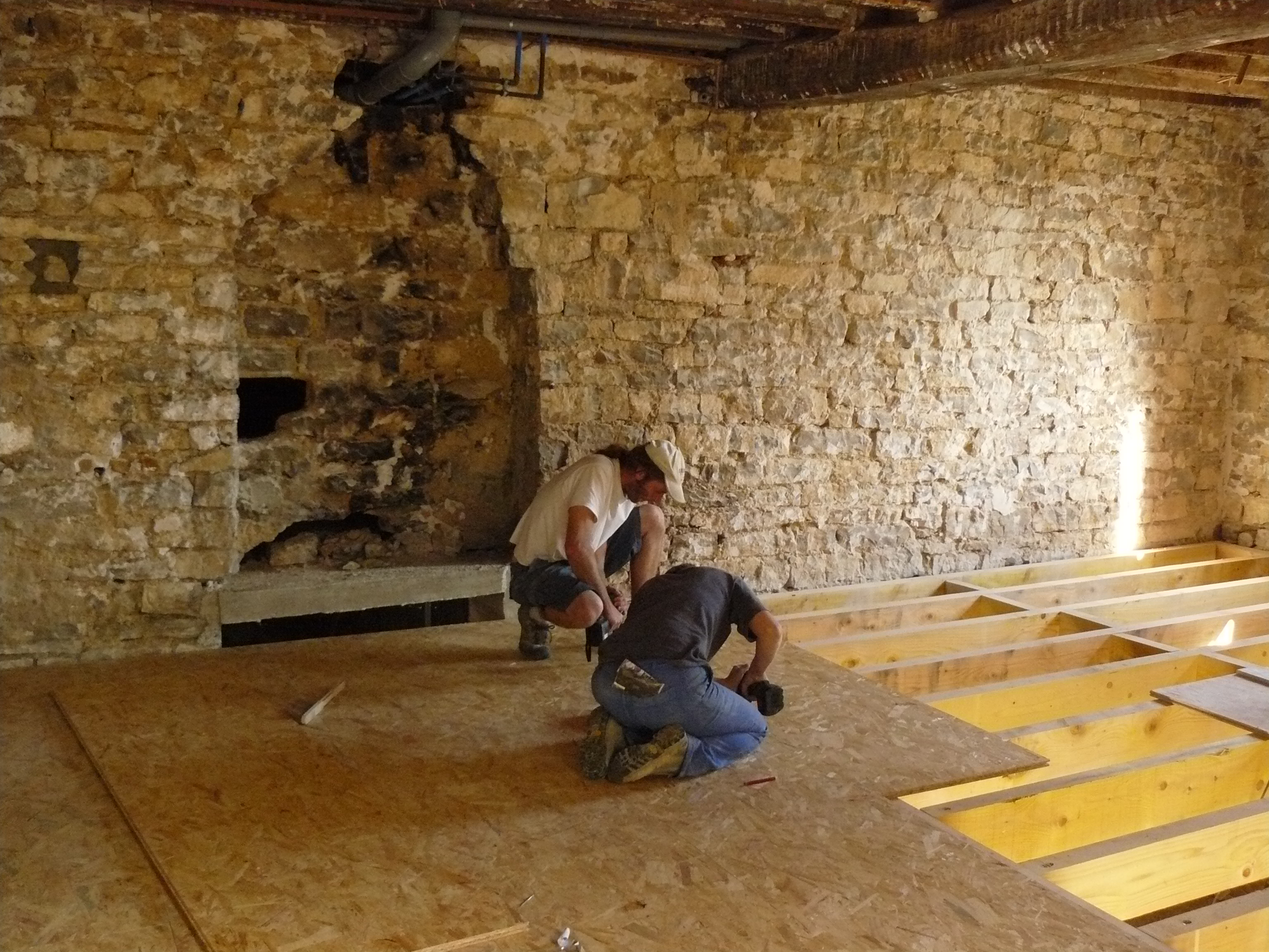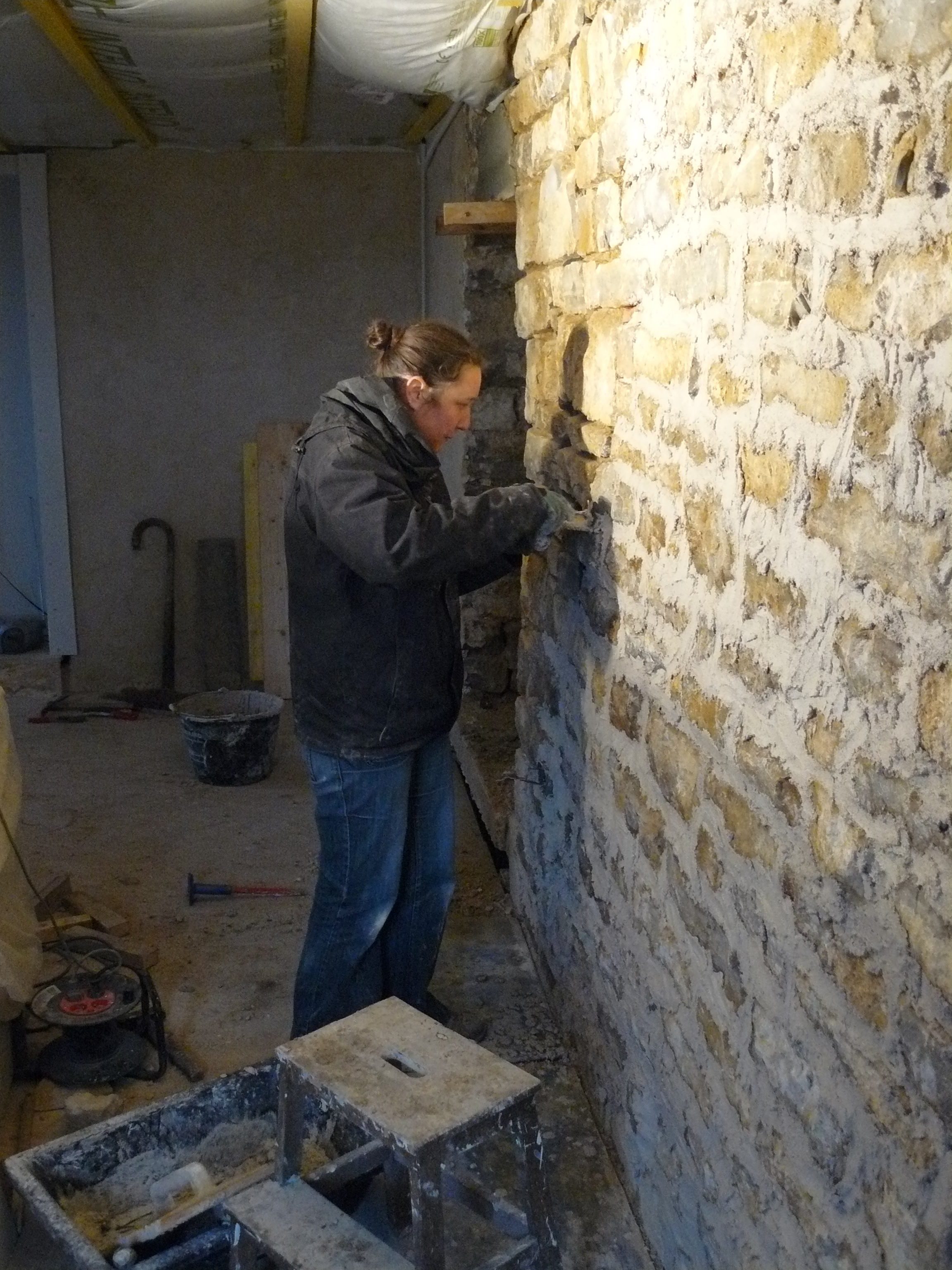 Avril 2017 : Allez encore un peu de courage ! Décaissage de l’espace de stockage et coulage des dalles.