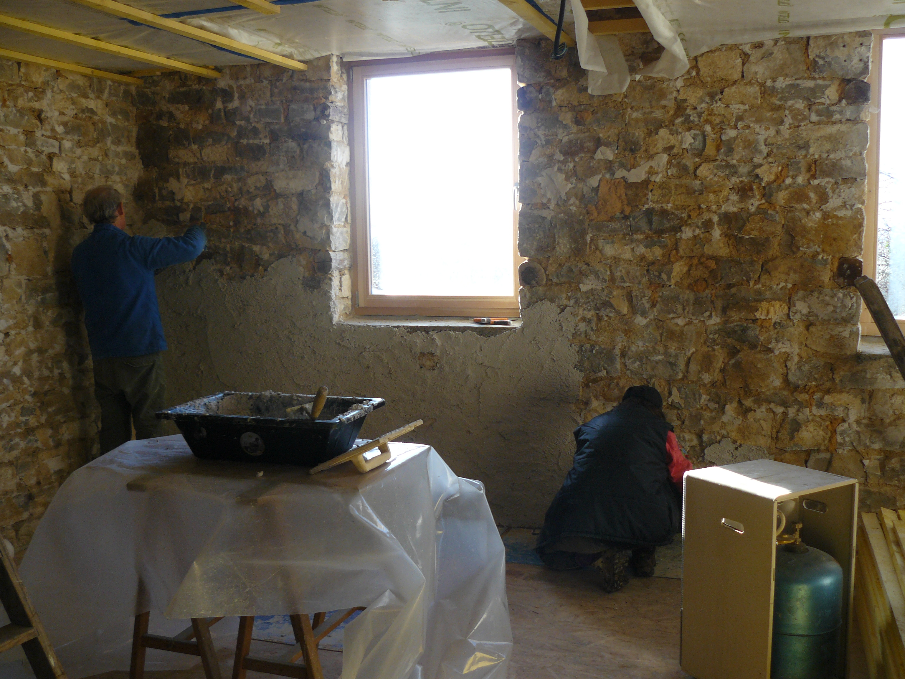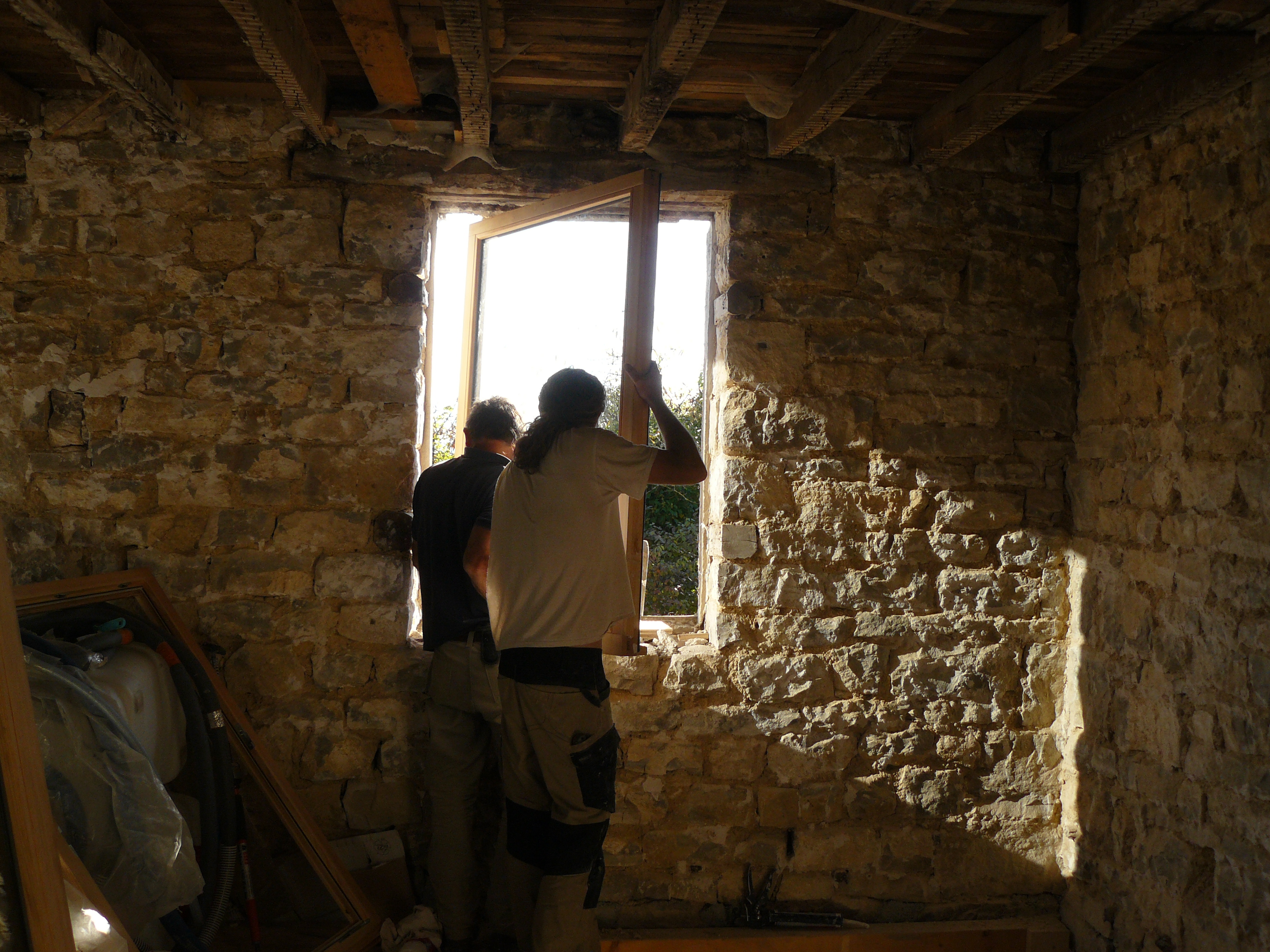 Août – Octobre 2016 : C’est parti pour les enduits et la pose des fenêtres…