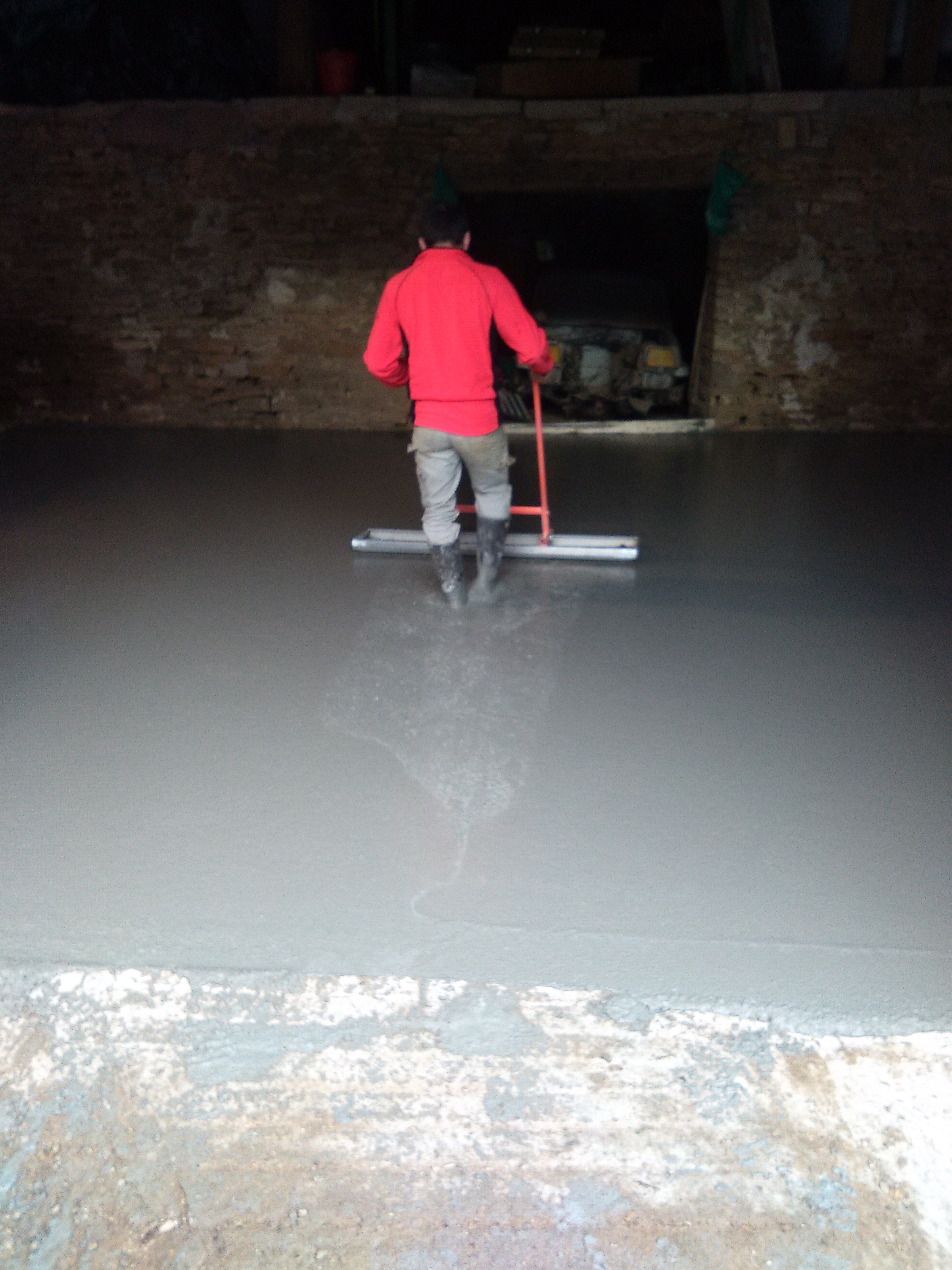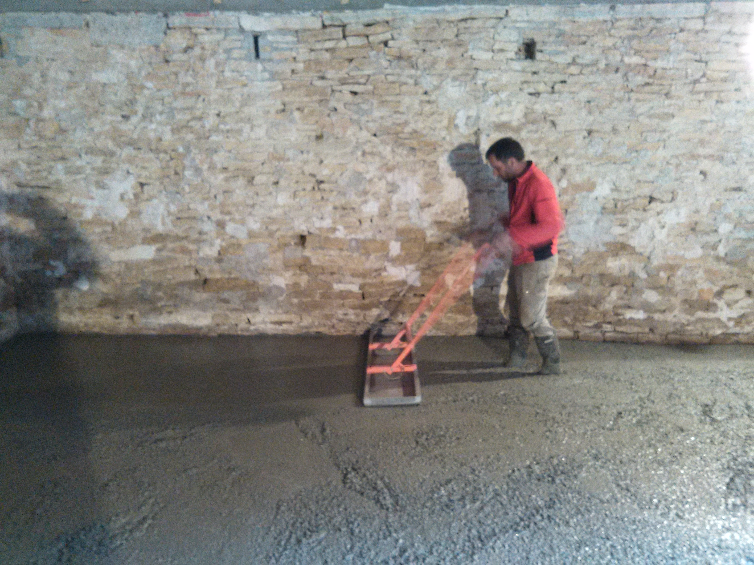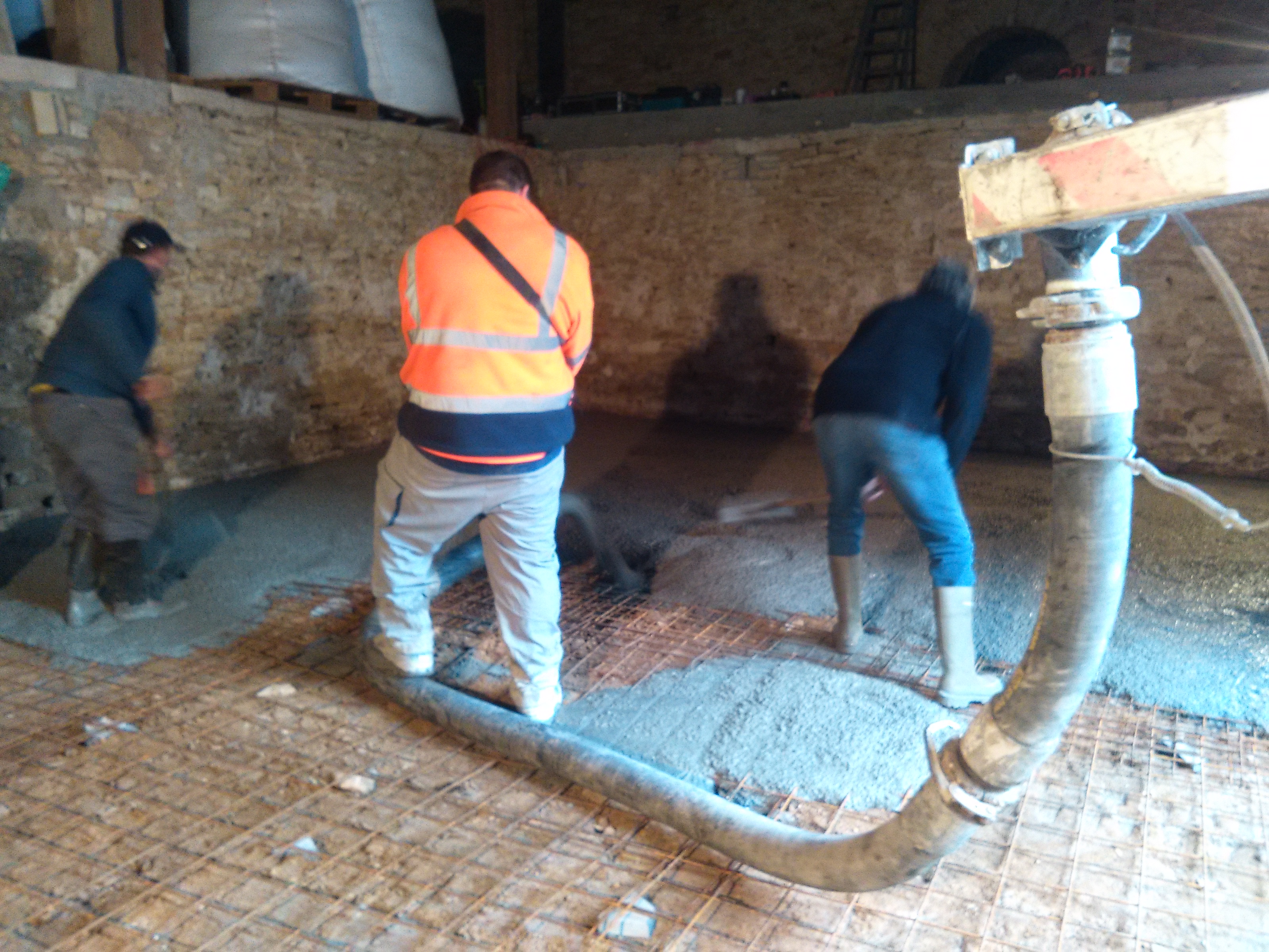 Coulage de la dalle par le maçon.