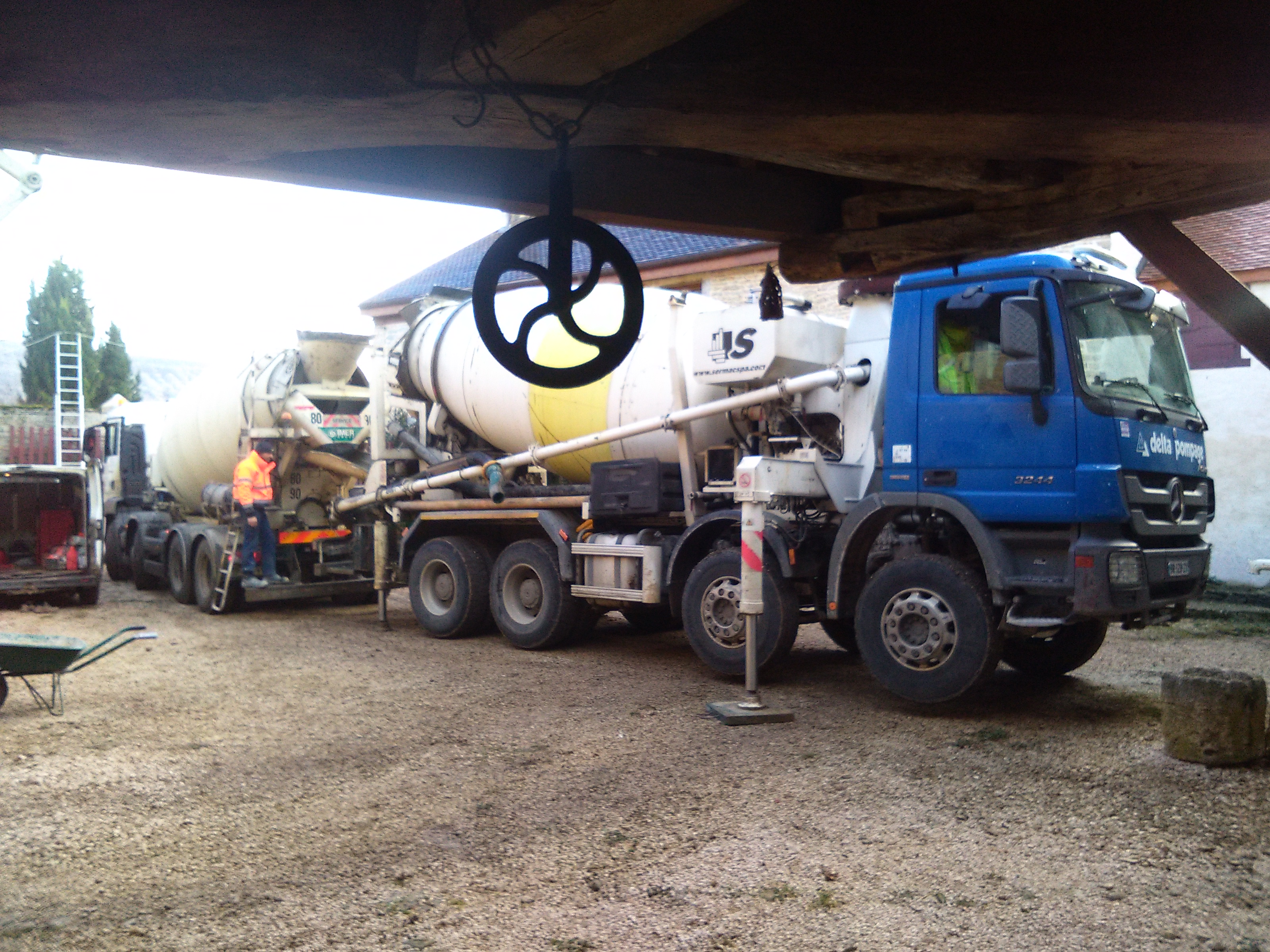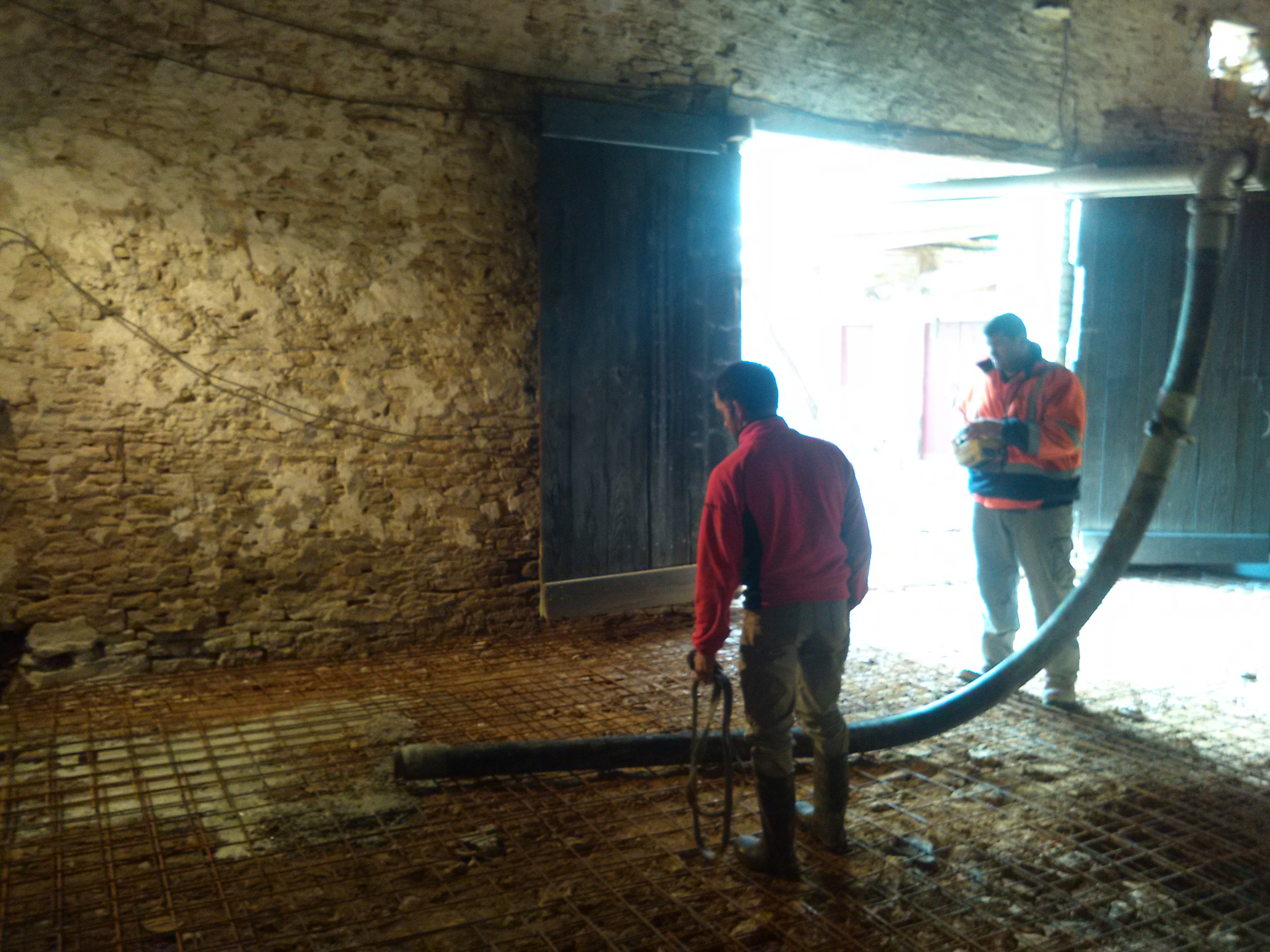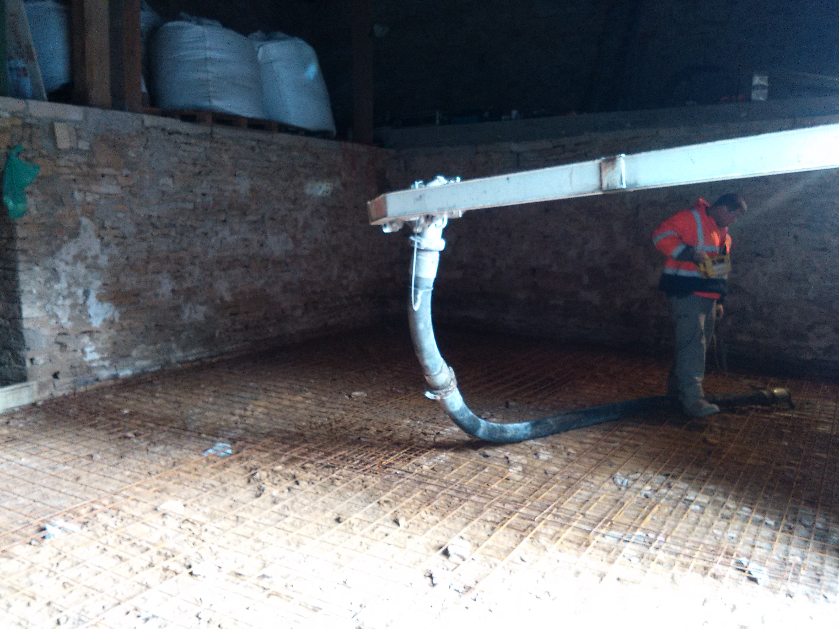 Coulage de la dalle par le maçon.