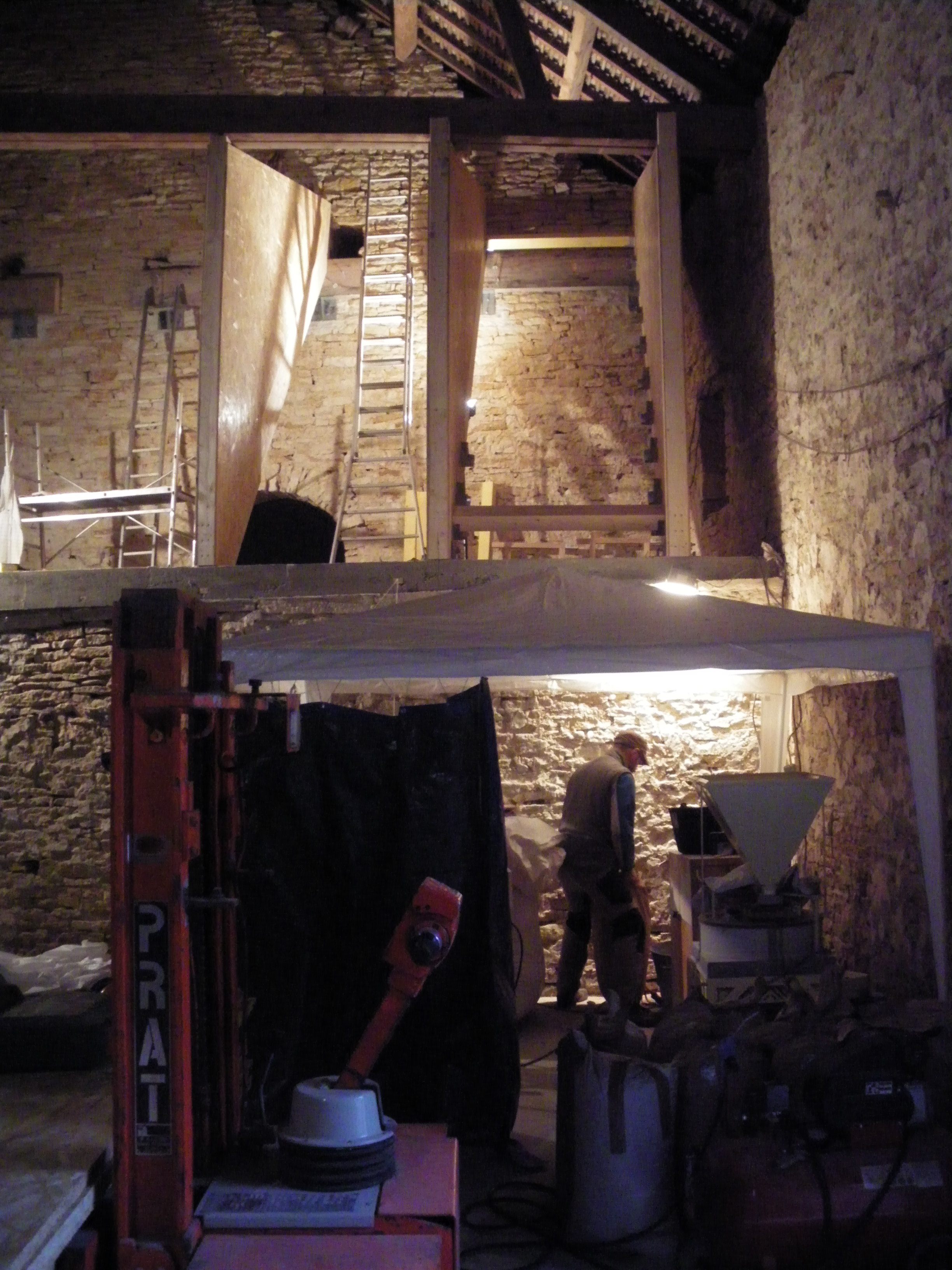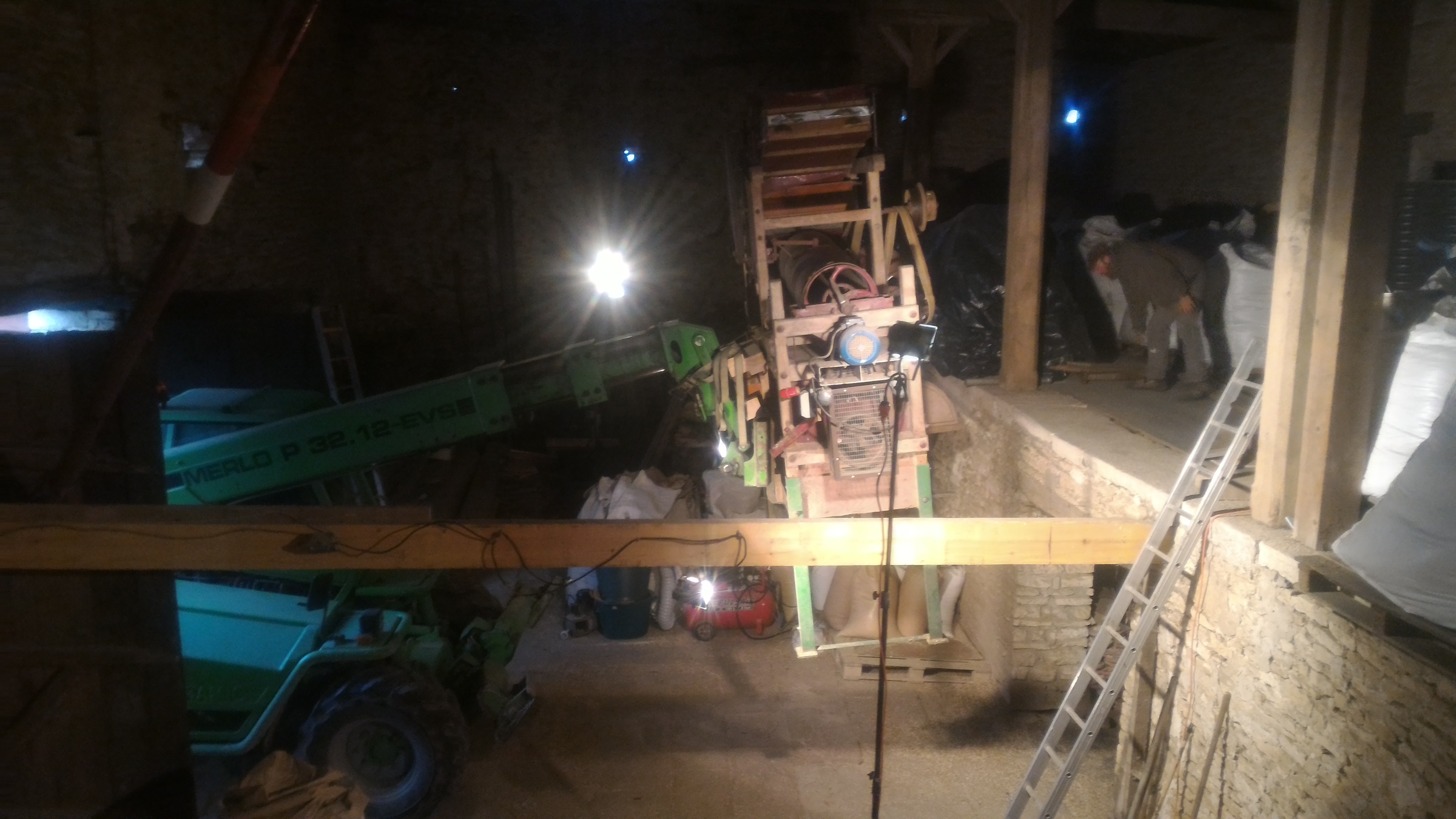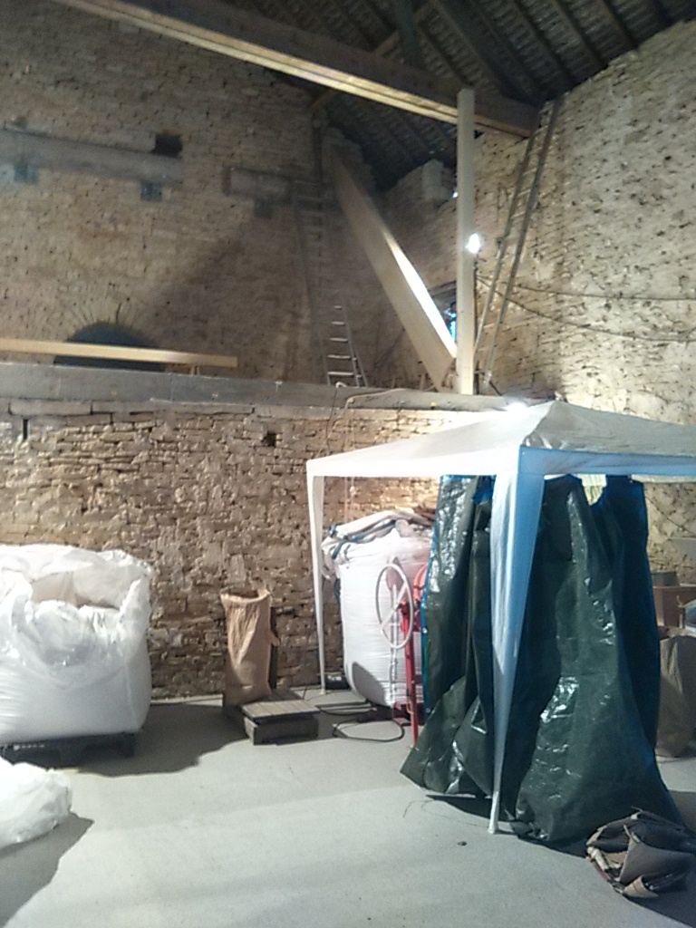 Démontage du coffrage, réception des matériaux pour les cellules, vidange et démontage des anciennes cellules de stockages, triage et mouture des derniers grains de la moisson 2018 (vivement l’autonomie!!), déménagement du combiné trieur, puis du moulin (le temps de couler la dalle en S51!).