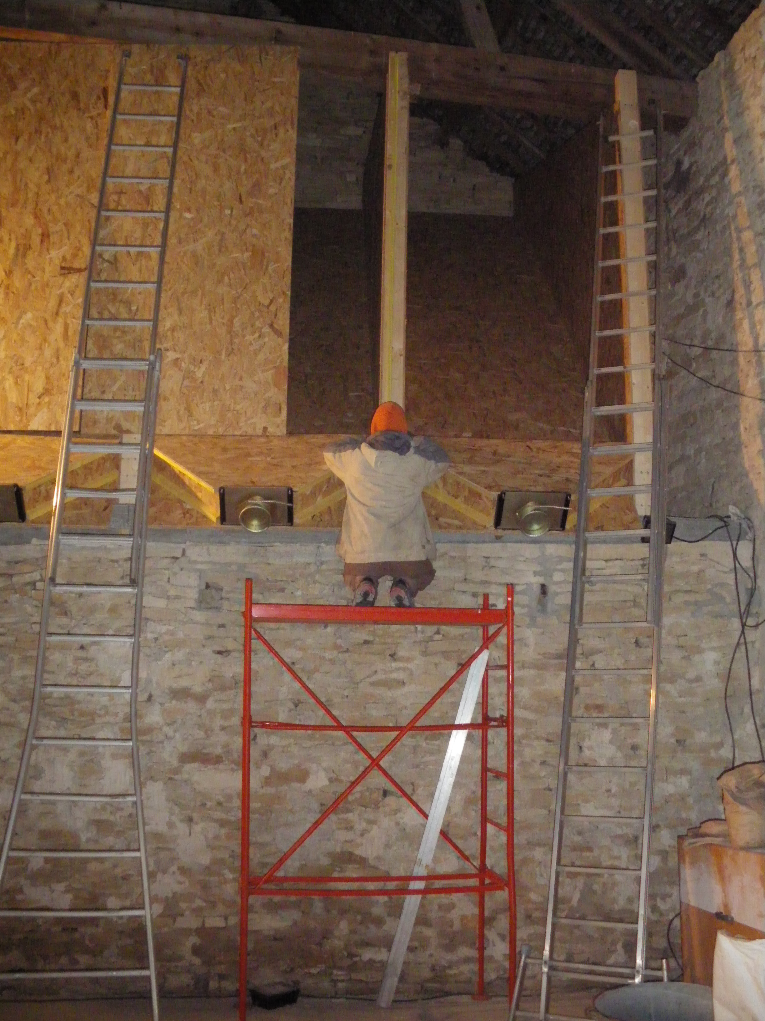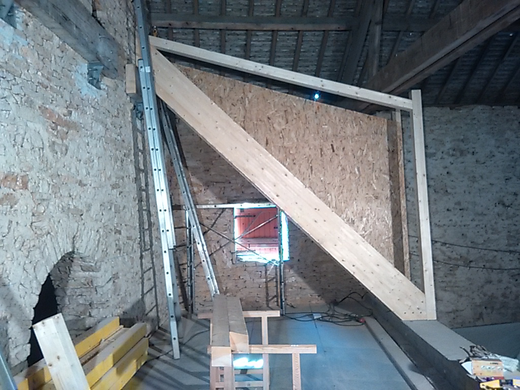 Donc, ayant pris le parti de compter une fois de plus sur la dynamique collective (on ne change pas une équipe qui gagne), je vous propose, 1 an et demi après avoir brillamment rénové un fournil centenaire de Mâlain, d’apporter votre poutre à l’édifice! Chantier qui sentira bon la sève de sapin (11m3 de bois) …mais pas que (3,5 m3 de panneaux OSB).