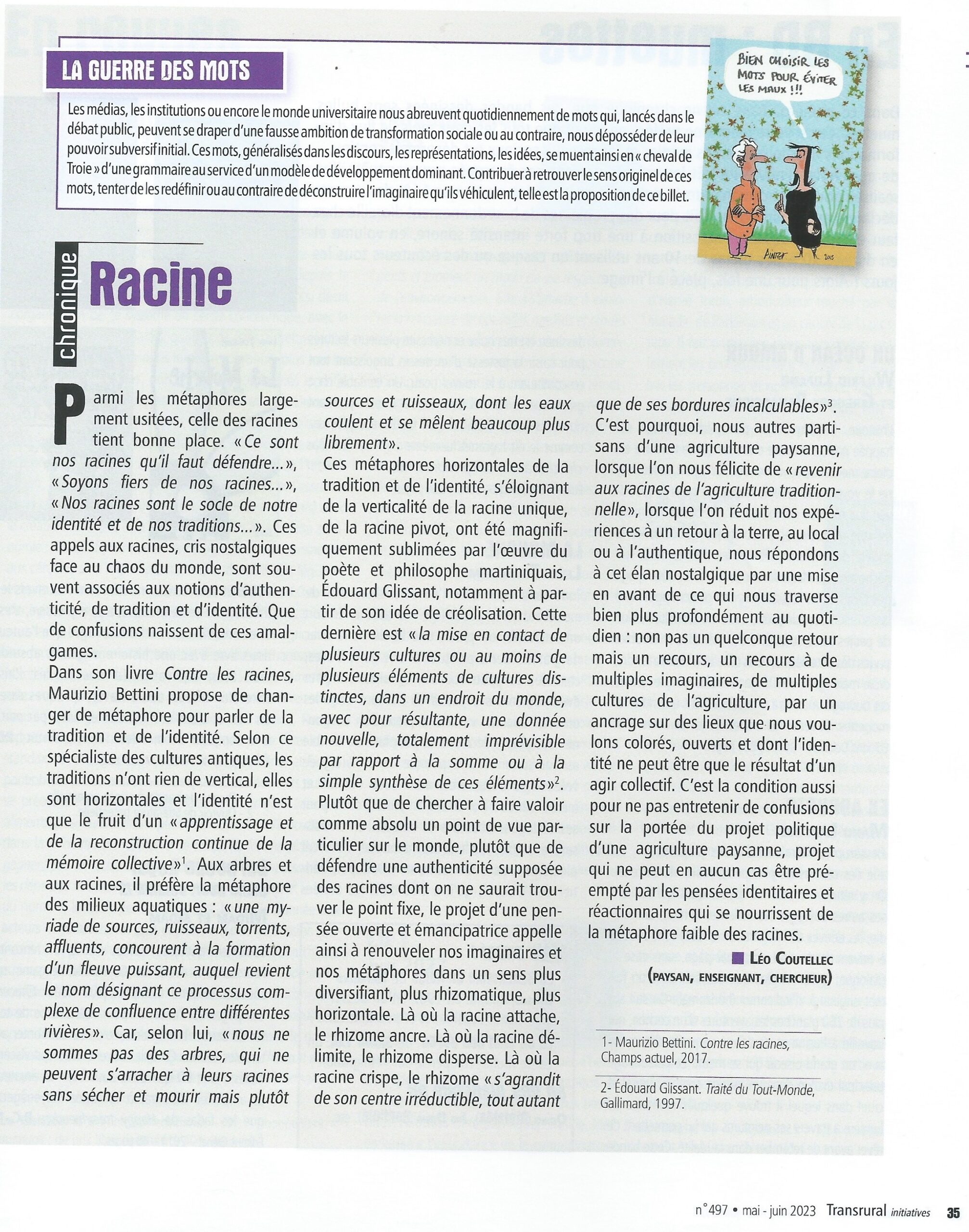 Article paru dans Transrural Initiatives n°497, mai-juin 2023