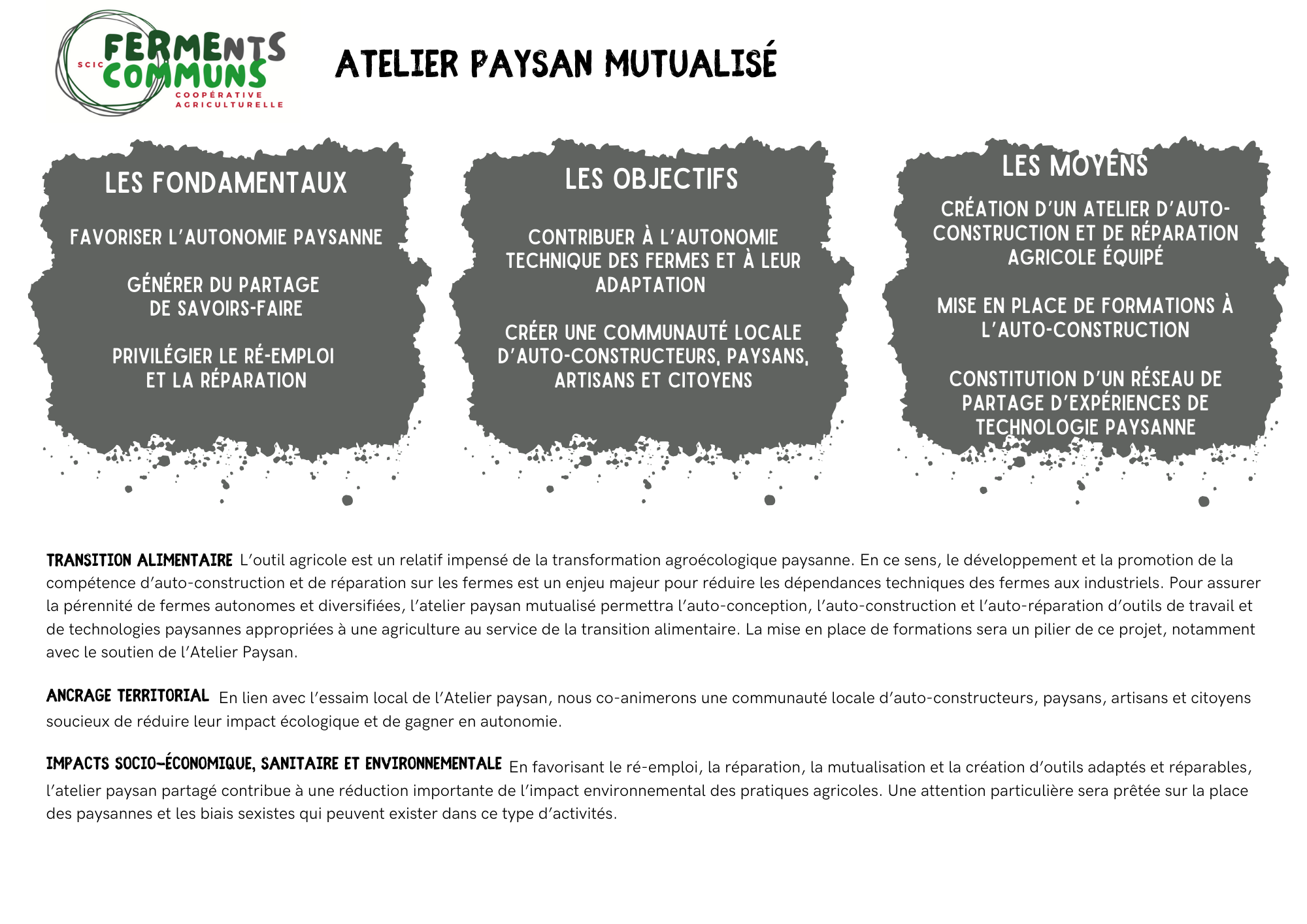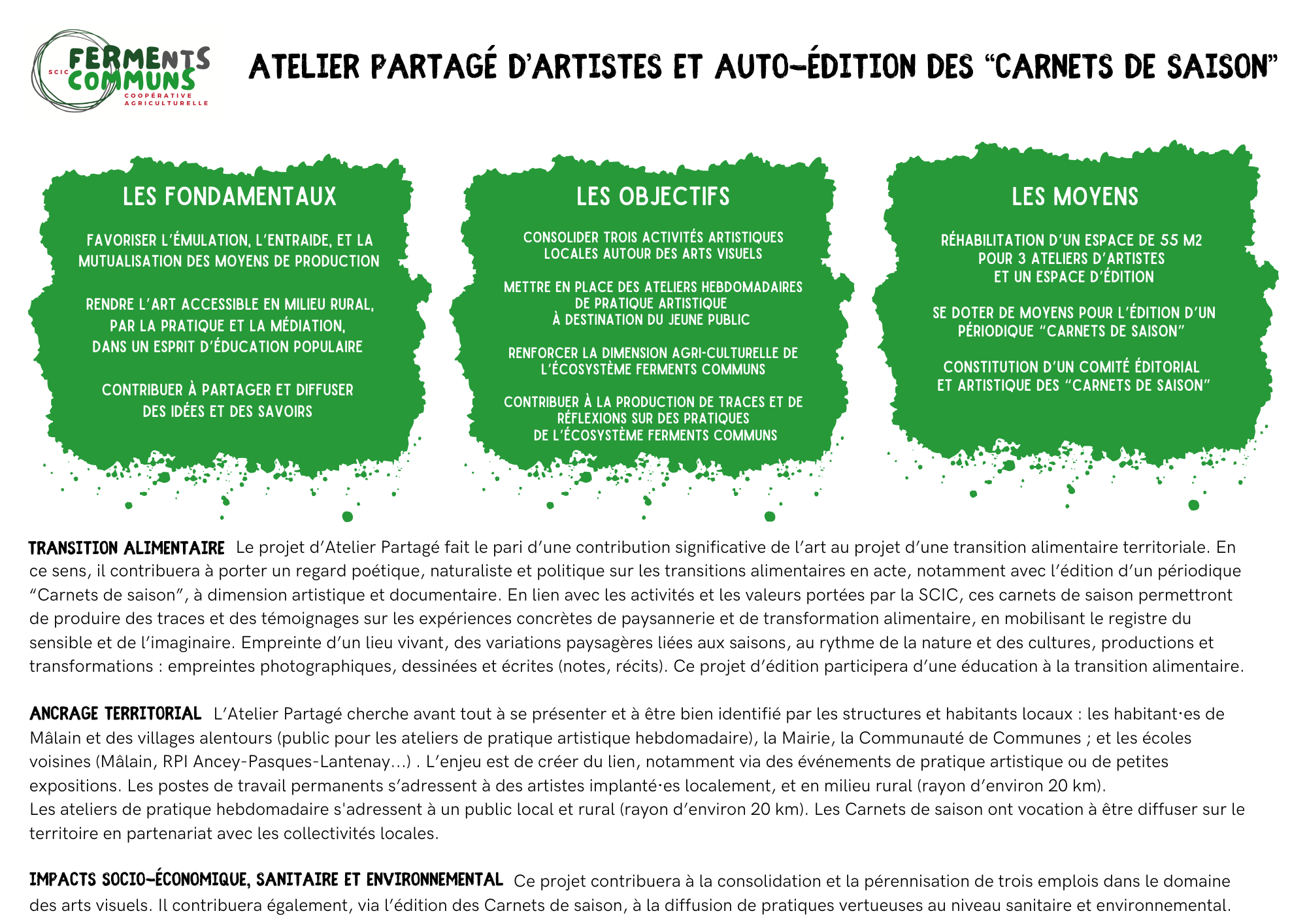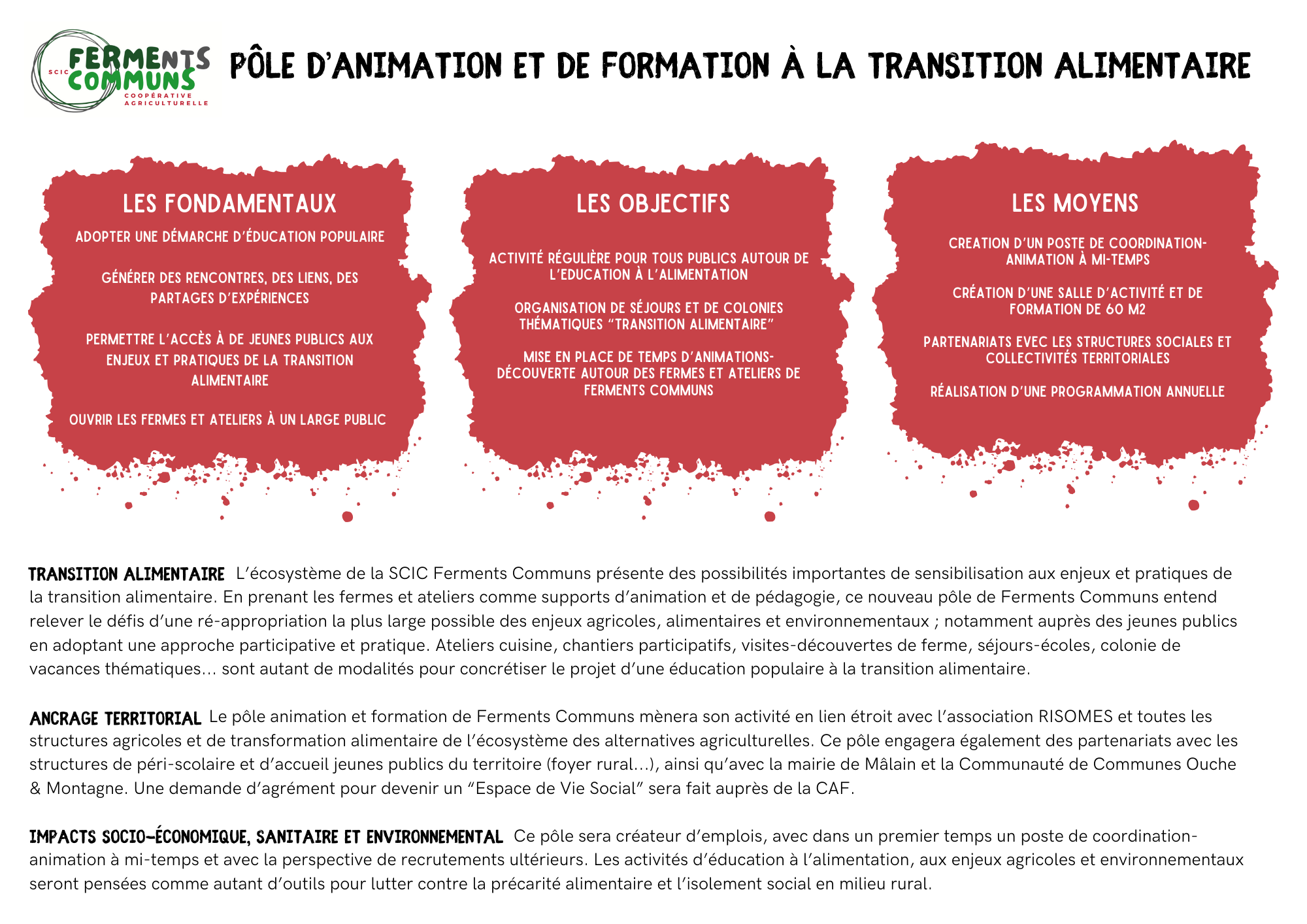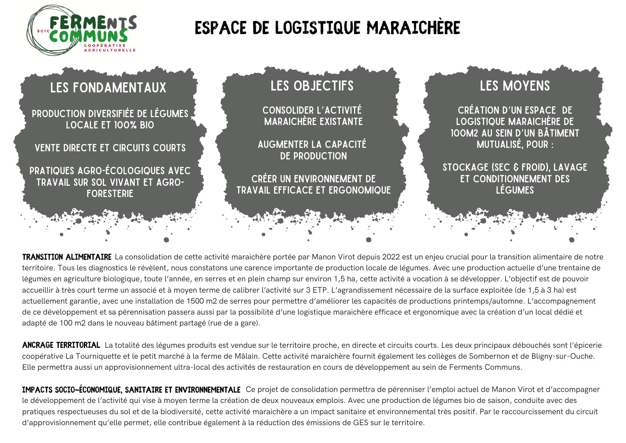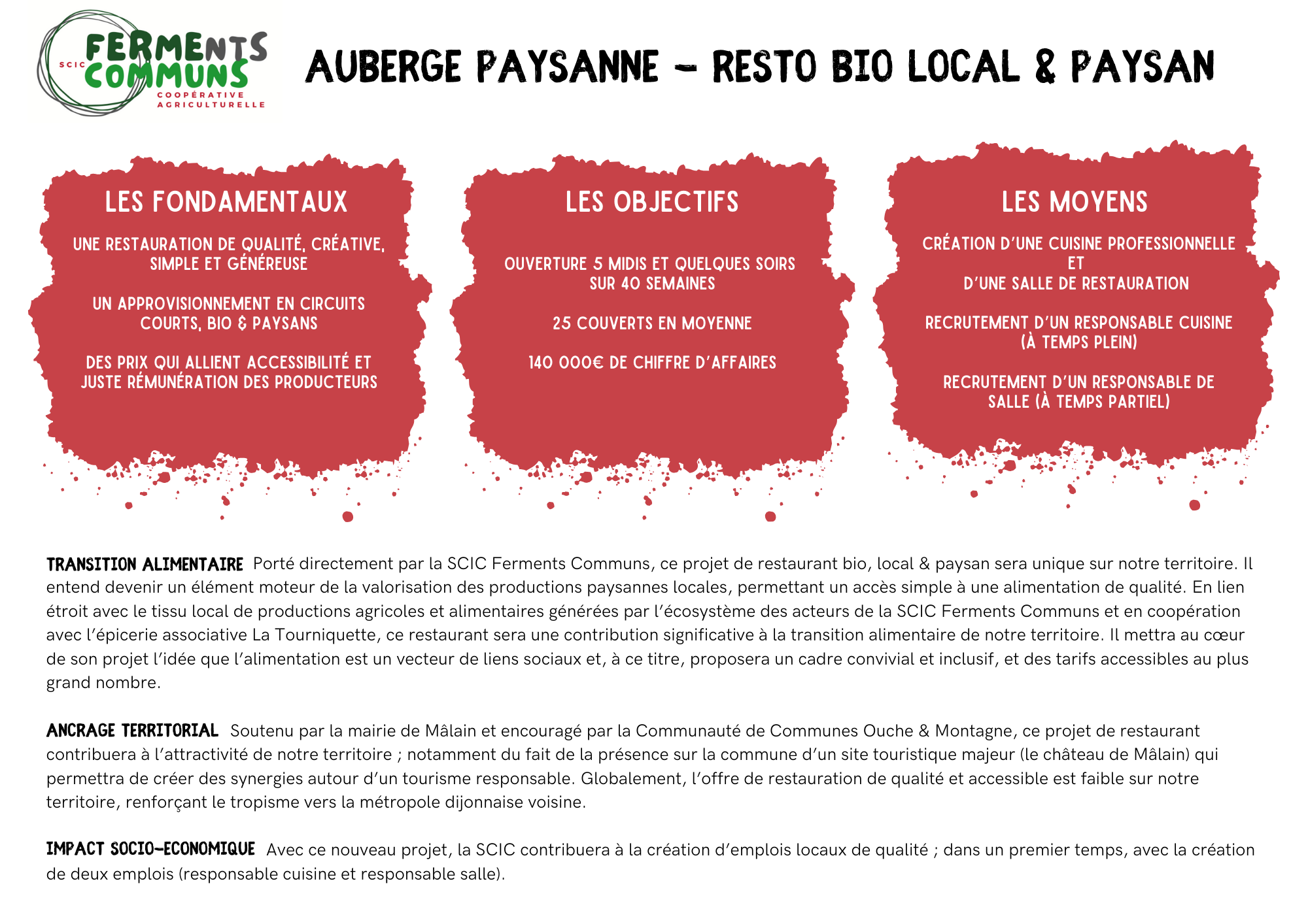 Après l’achat d’un nouveau lieu en 2024 à Mâlain, et un an de concertation avec tous les acteurs et partenaires de la SCIC Ferments Communs, nous lançons la phase opérationnelle des travaux de construction et de réhabilitation. Pour finaliser le plan d’investissement et rendre concret tous ces beaux projets, nous avons besoin de vous !
