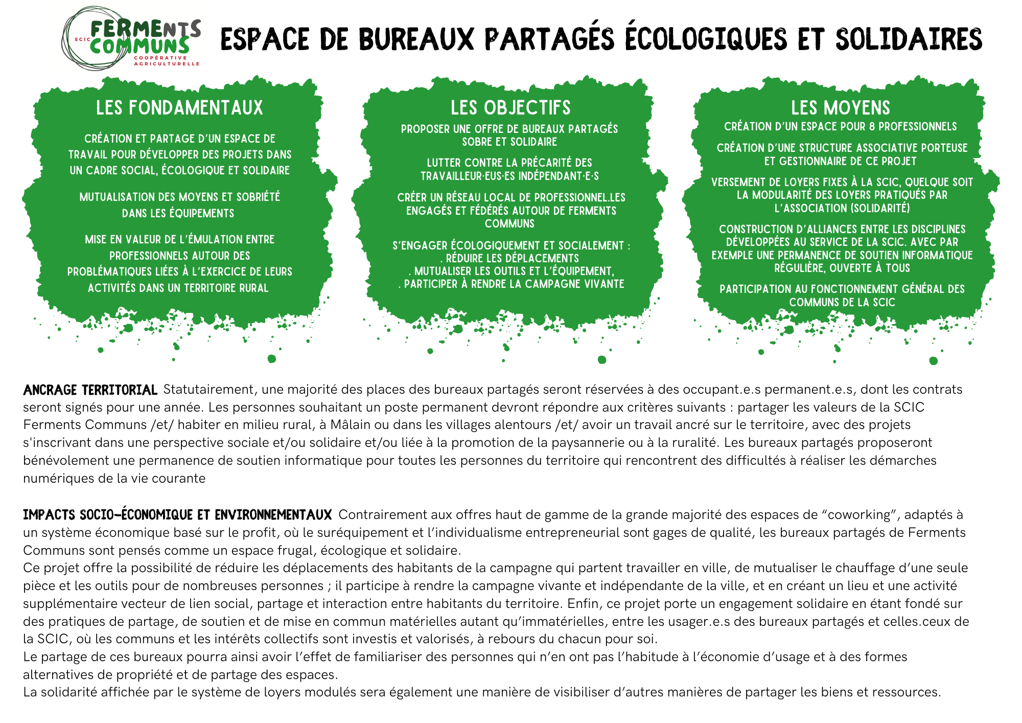 Création et partage d’un espace de travail pour développer des projets dans un cadre social, écologique et solidaire