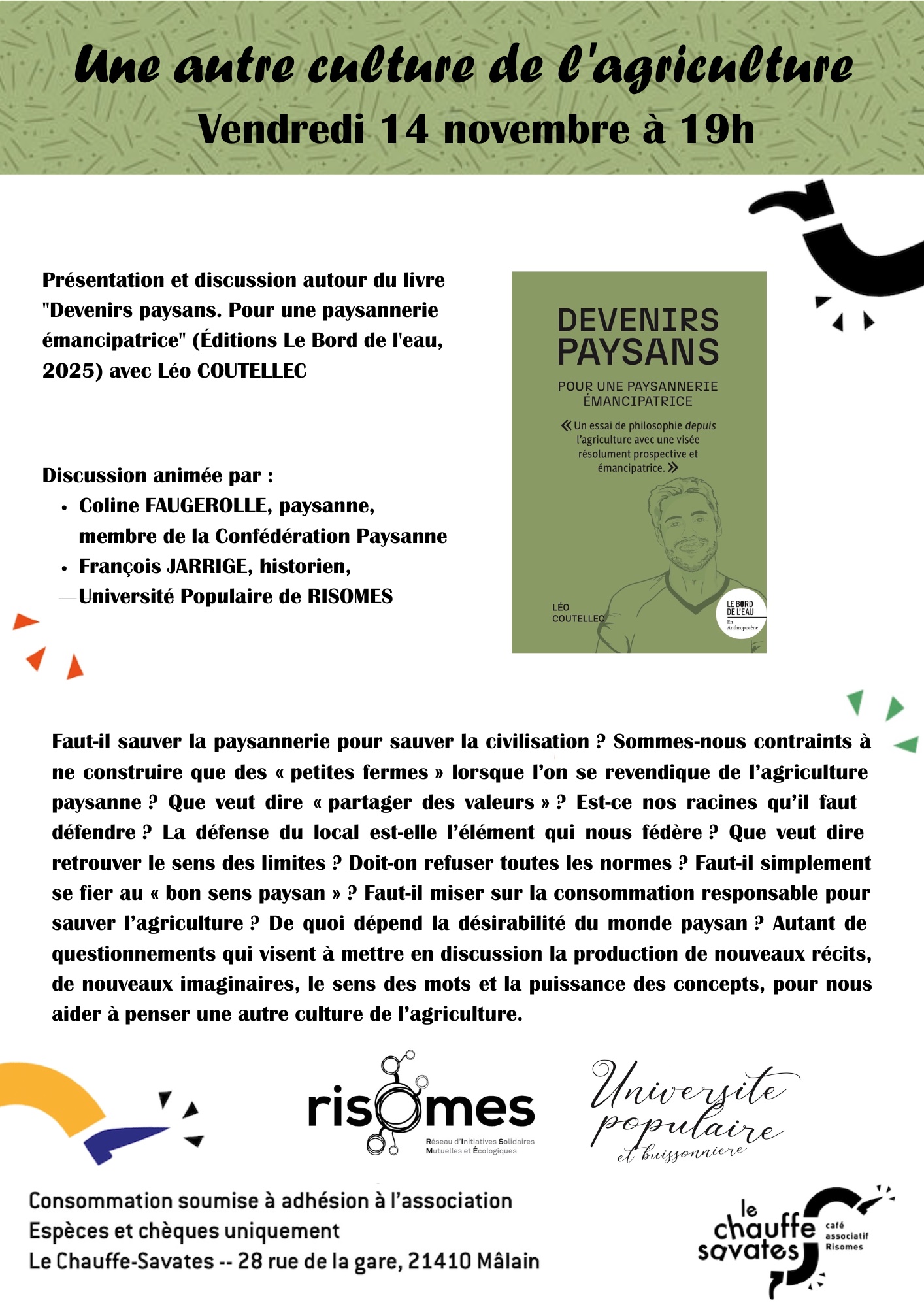 Présentation et discussion autour du livre « Devenirs paysans. Pour une paysannerie émancipatrice » (Éditions Le Bord de l’eau, 2025) avec Léo COUTELLEC.